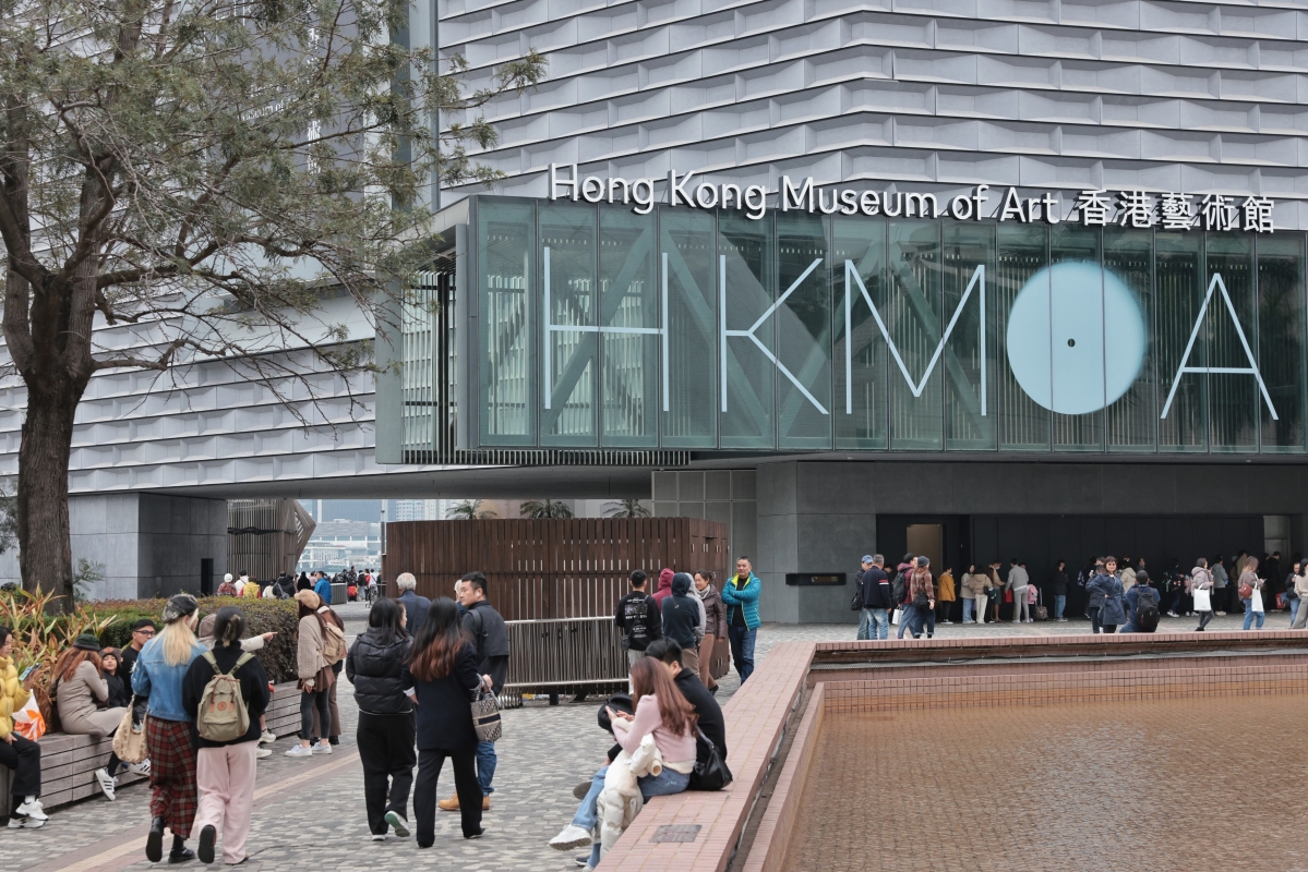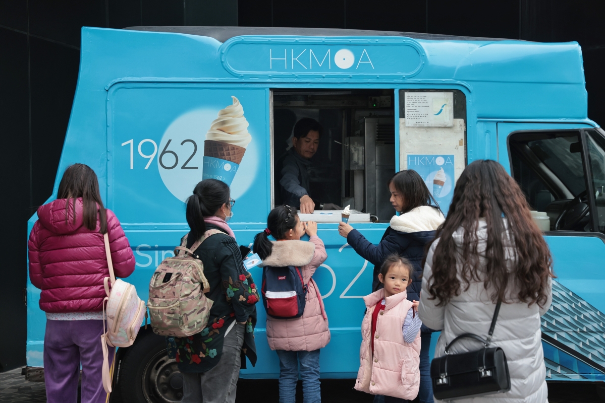 寒冷天氣下香港藝術館外一度約50人排隊領取免費雪糕