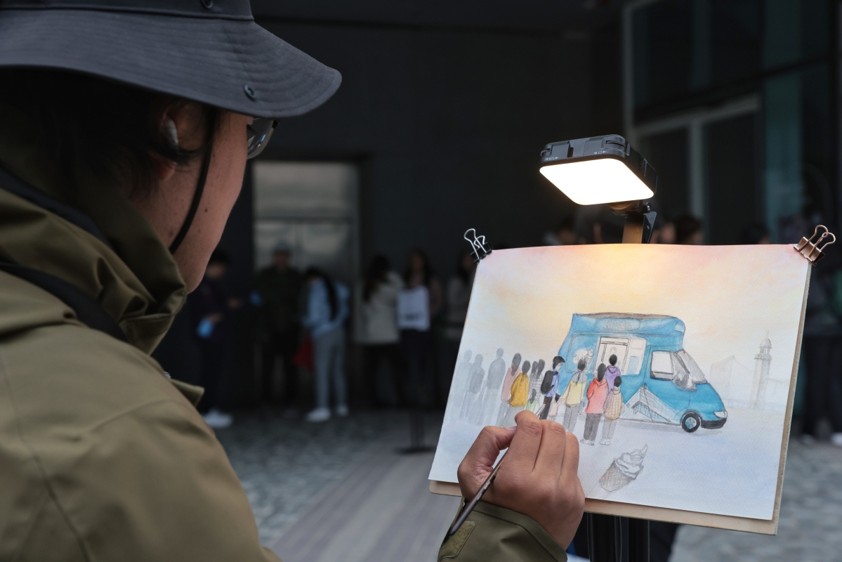 香港藝術館62週年館慶免費派1962杯雪糕場面吸引畫家寫生