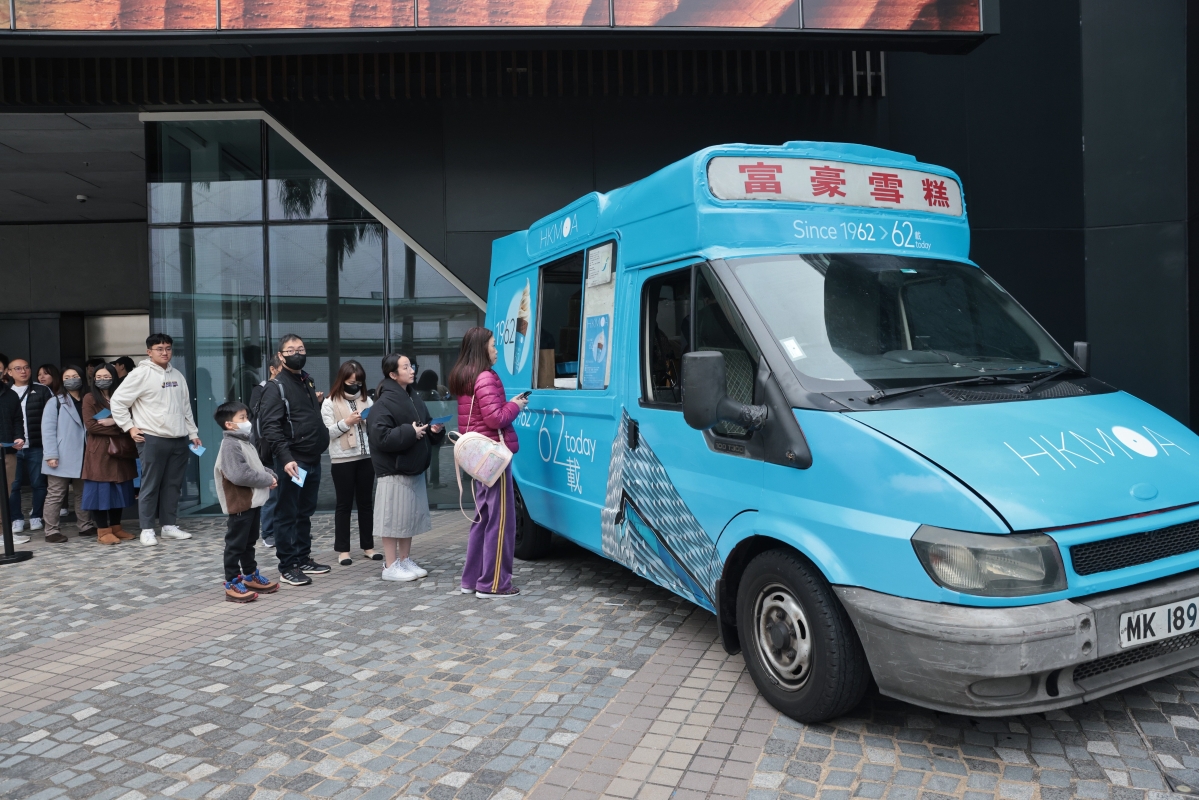 香港新聞網3月2日電(記者 謝光磊) 3月2日,香港藝術館踏入62週年。當天,康文署中午舉行免費派雪糕活動慶祝,安排富豪雪糕車停泊在館外,向市民免費排發1962杯免費雪糕,以慶祝62週年館慶。目前寒冷天氣警告生效,尖沙咀氣溫一度錄得只有9.6度,是近14年來最冷的三月天。濕凍天氣無阻市民和旅客興致,現場一度維持約50人的人龍。