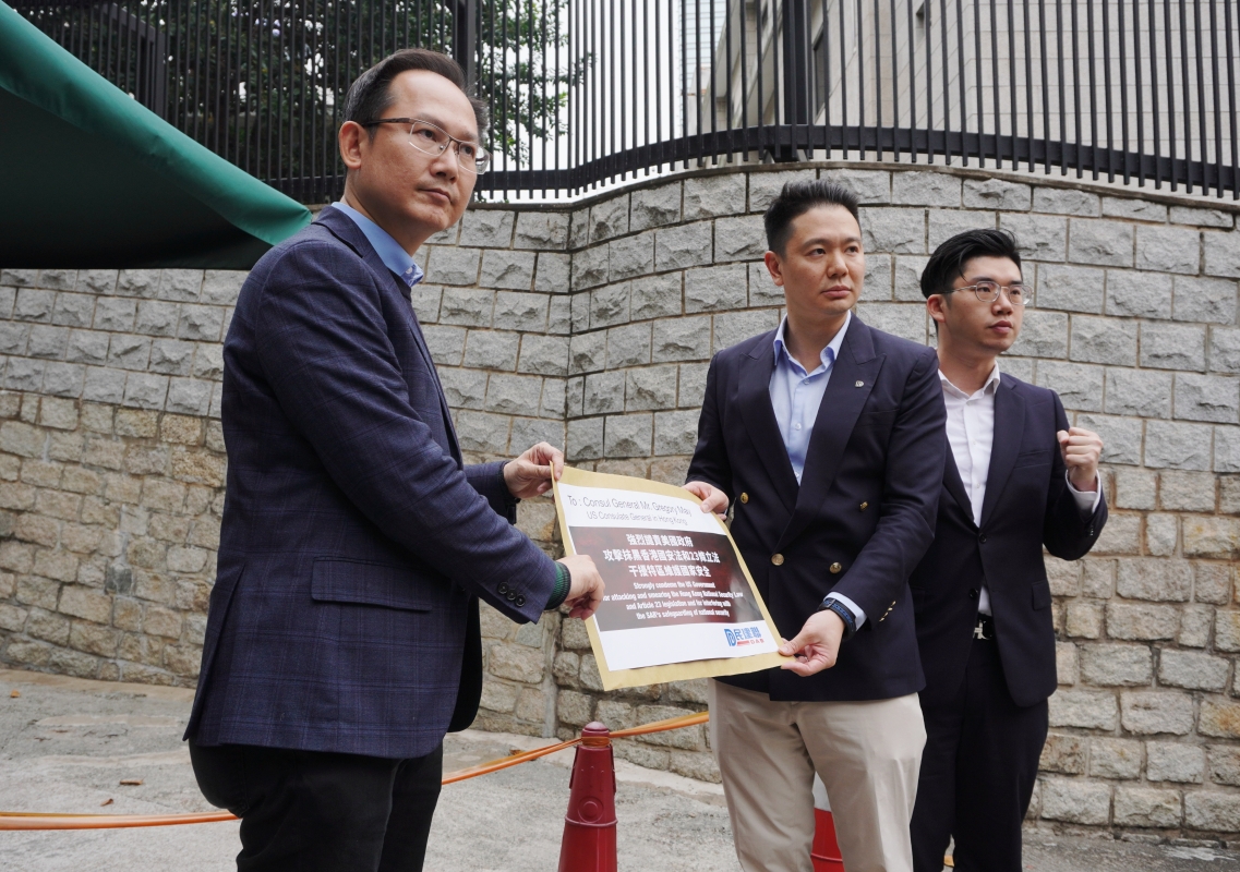 民建聯成員在美國駐港總領事館遞交抗議信