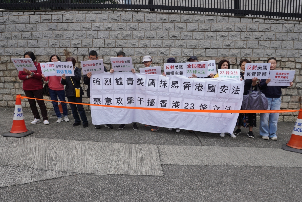 香港市民和團體陸續到美國駐港總領事館前抗議