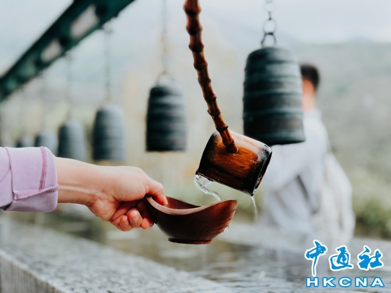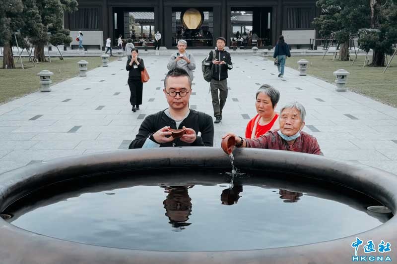 參觀者可在供水池用木缽裝滿水,捧著木缽,滴水不漏地走過觀音像前的慈悲道,將水供奉至"千應處",便算完成祈福。