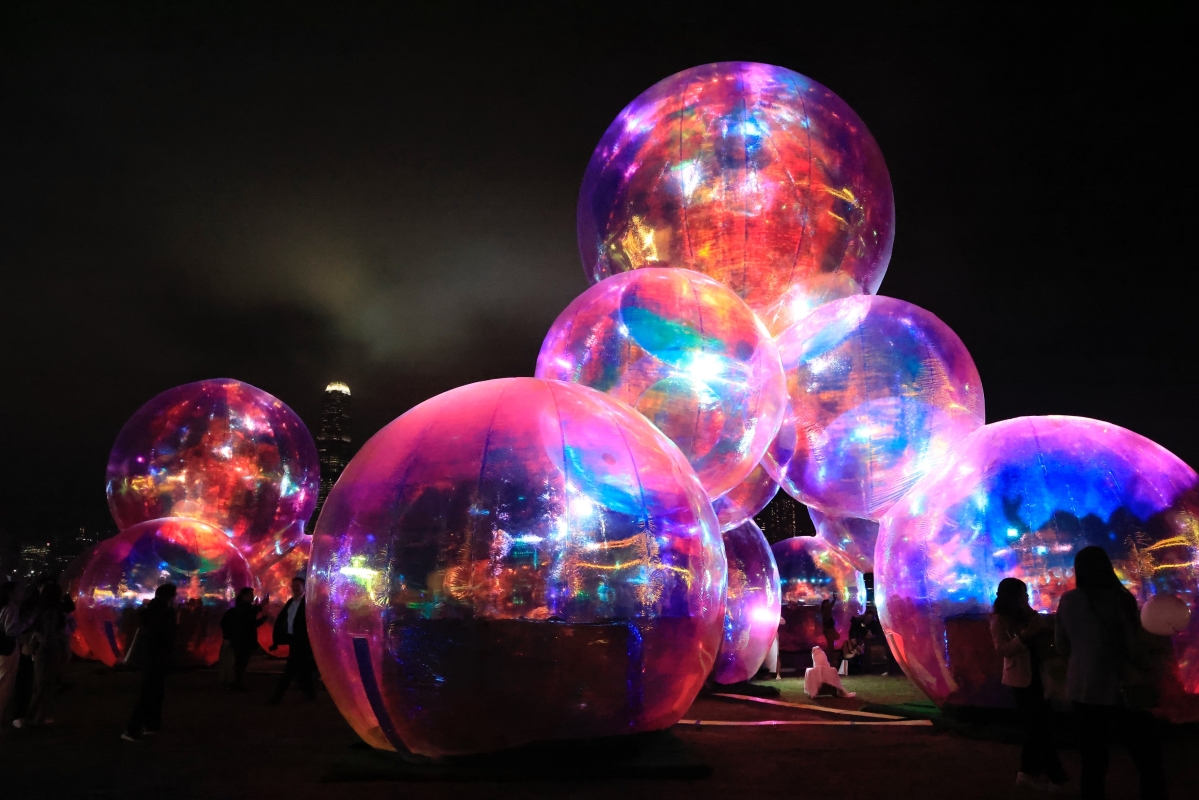 巨型肥皂泡泡造型裝置融入維港海景,配合特別燈光和聲效,視覺效果隨日照時間改變 【編輯:曹文毓】