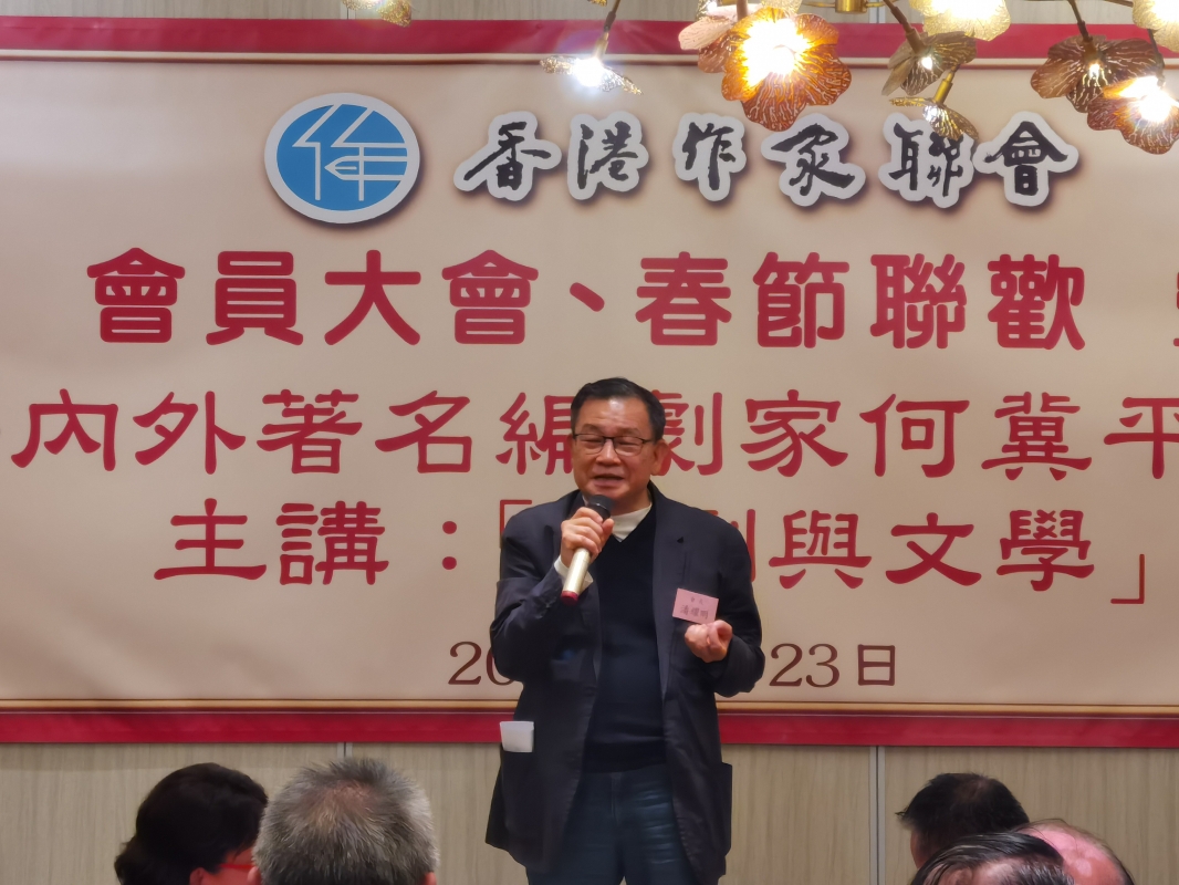 香港新聞網3月23日電 (記者 譚暢)23日,香港作家聯會舉辦會員大會暨春節聯歡,聯會會長潘耀明進行工作總結。是次大會亦邀請到海內外著名編劇家何冀平女士任主講嘉賓,以“編劇與文學”為題進行分享。