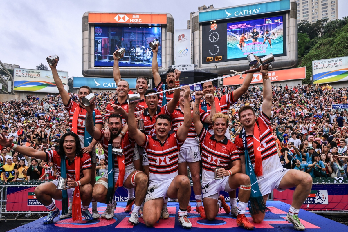 香港國際七人欖球賽港隊戰勝日本隊贏得銀劍賽男子組冠軍