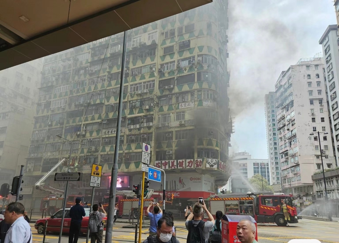 香港新聞網4月10日電 香港油麻地佐敦道一大廈10日上午七時五十三分發生火警,並於上午八時零四分升為三級,火勢於上午八時五十四分受到包圍。據瞭解,現場至少5死19傷。 消防人員正動用兩條喉及兩隊煙帽隊灌救。