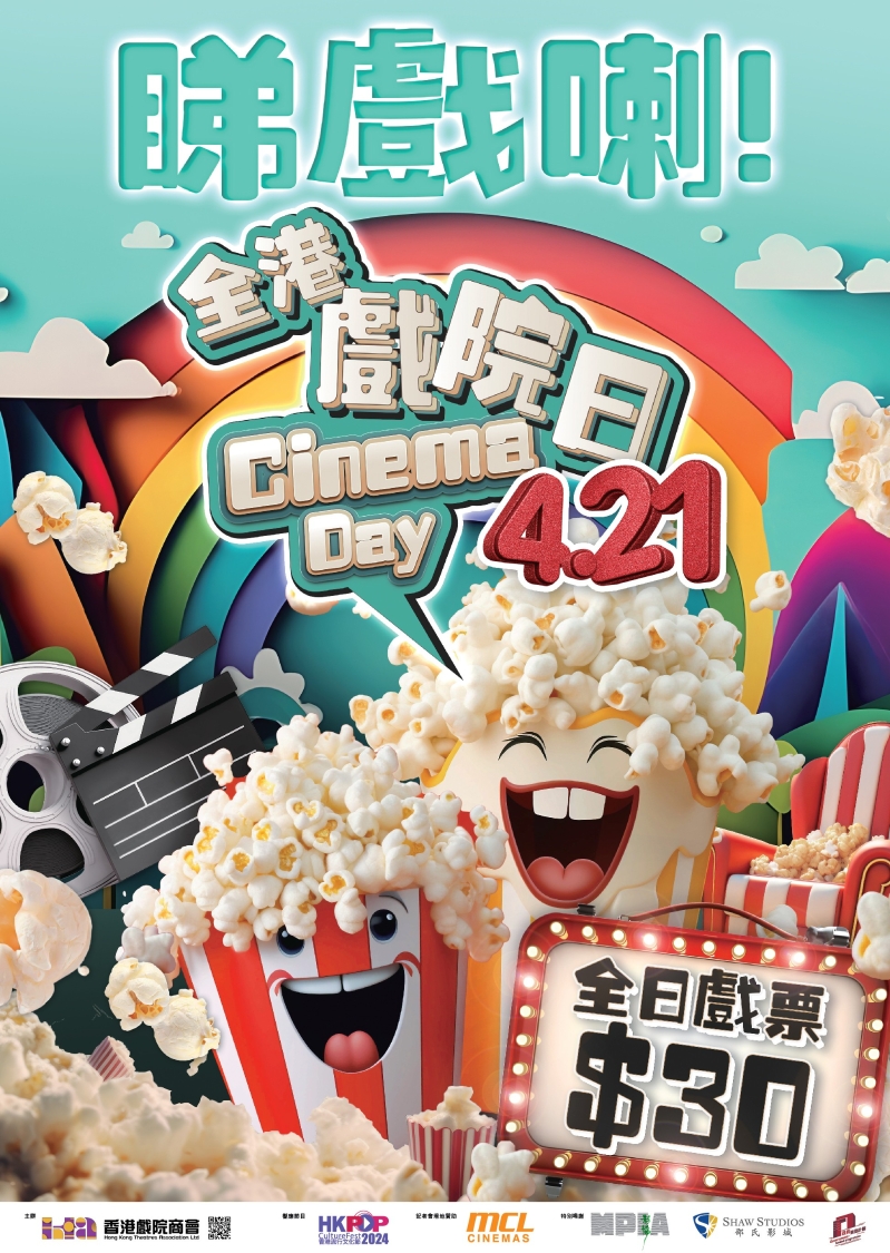 觀眾可在21日“全港戲院日”舉行當天,以30元優惠票價到全港63間戲院,欣賞上映中任何放映格式的電影。屆時上映的電影料逾70套。 優惠適用於全港商業戲院,包括ACX cinemas@北角匯、百老匯院線、華懋電影院線影藝院線 、Cinema City 院線CGV D2 Place、英皇院線、嘉禾院線、高先電影院 Lumen Cinema、寶石戲院、MCL 院線、新寶院線、新光戲院(排名不分先後)。 觀眾於戲院票房購票,每人每次最多只可購買4張票;網上購票則依各院線的購票限制為準。(完) 【編輯:譚暢】