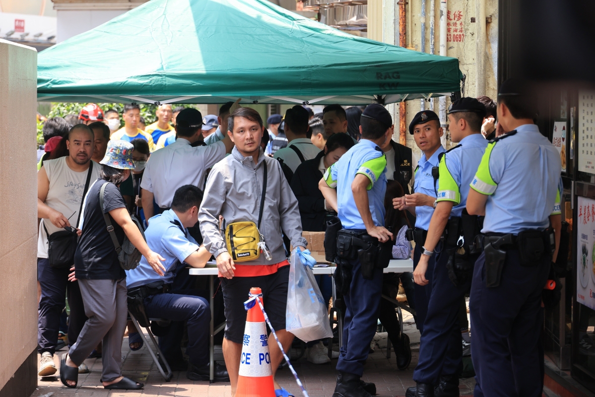 油尖旺民政事務處在大廈外設立跨部門援助站,聯同警方、消防處、社會福利署及香港旅遊發展局為市民提供適切協助