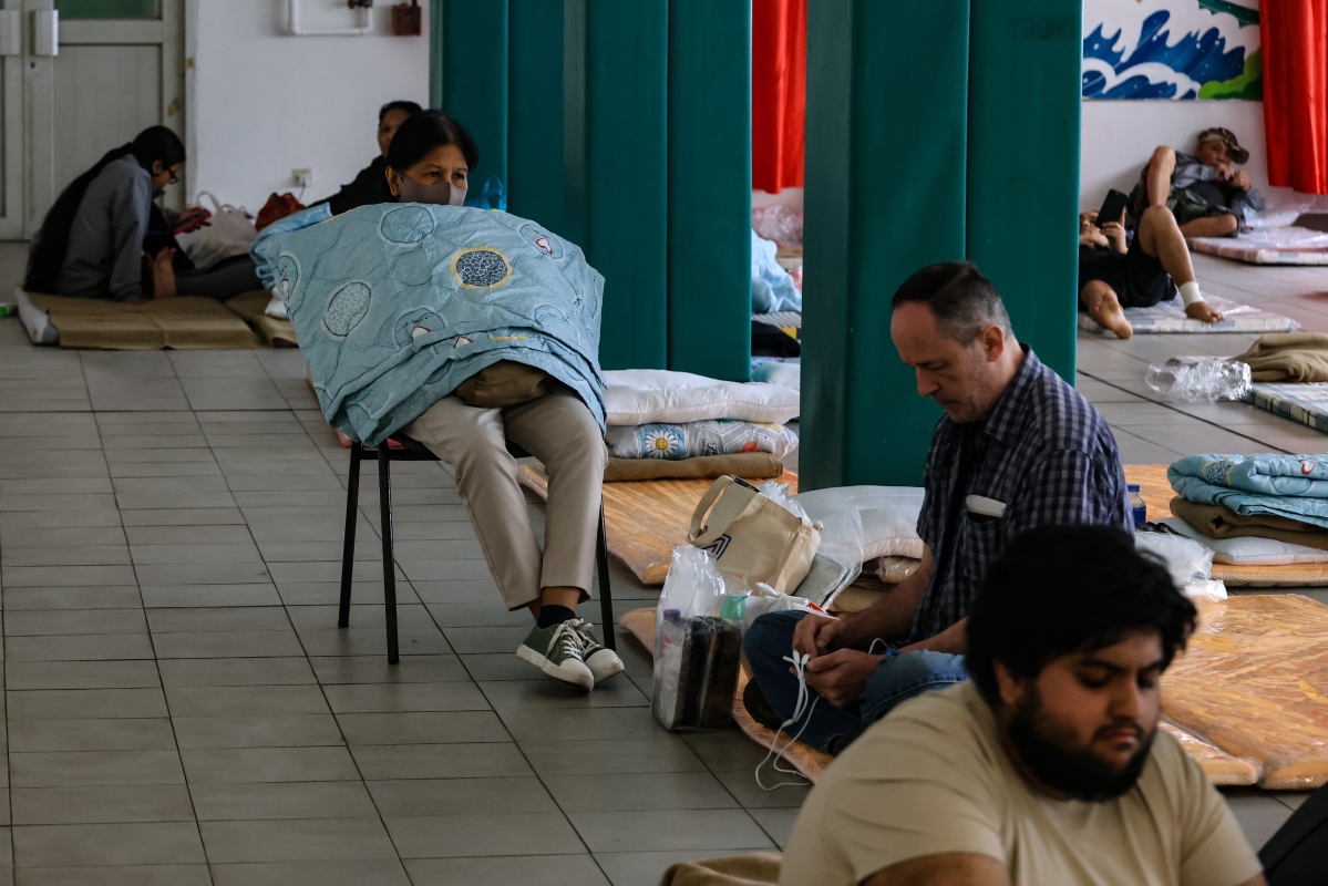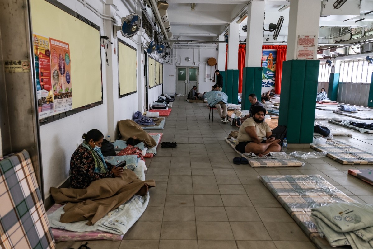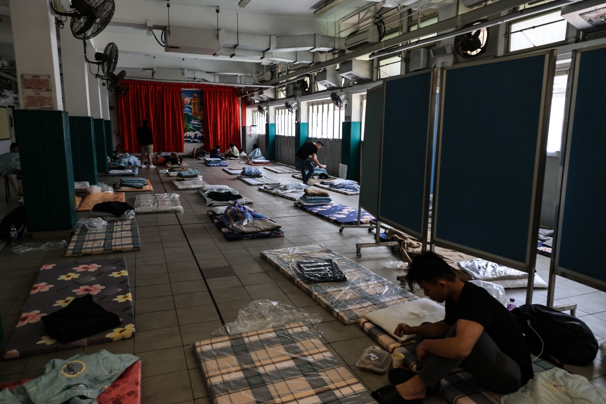 不少受災居民於梁顯利油麻地社區中心的庇護中心等候 【編輯:許其皓】