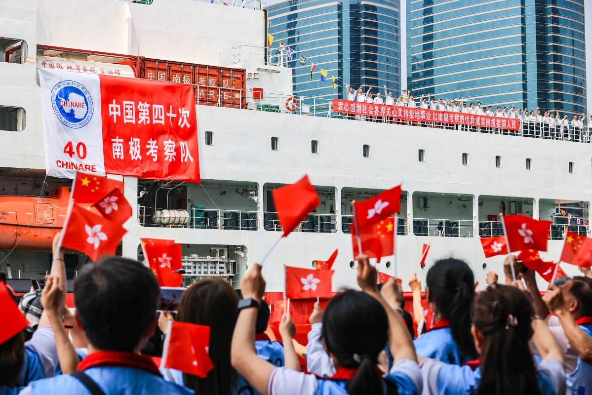 中國第40次南極考察隊及“雪龍2”號代表與市民揮手道別 中國第40次南極考察隊與市民揮手道別