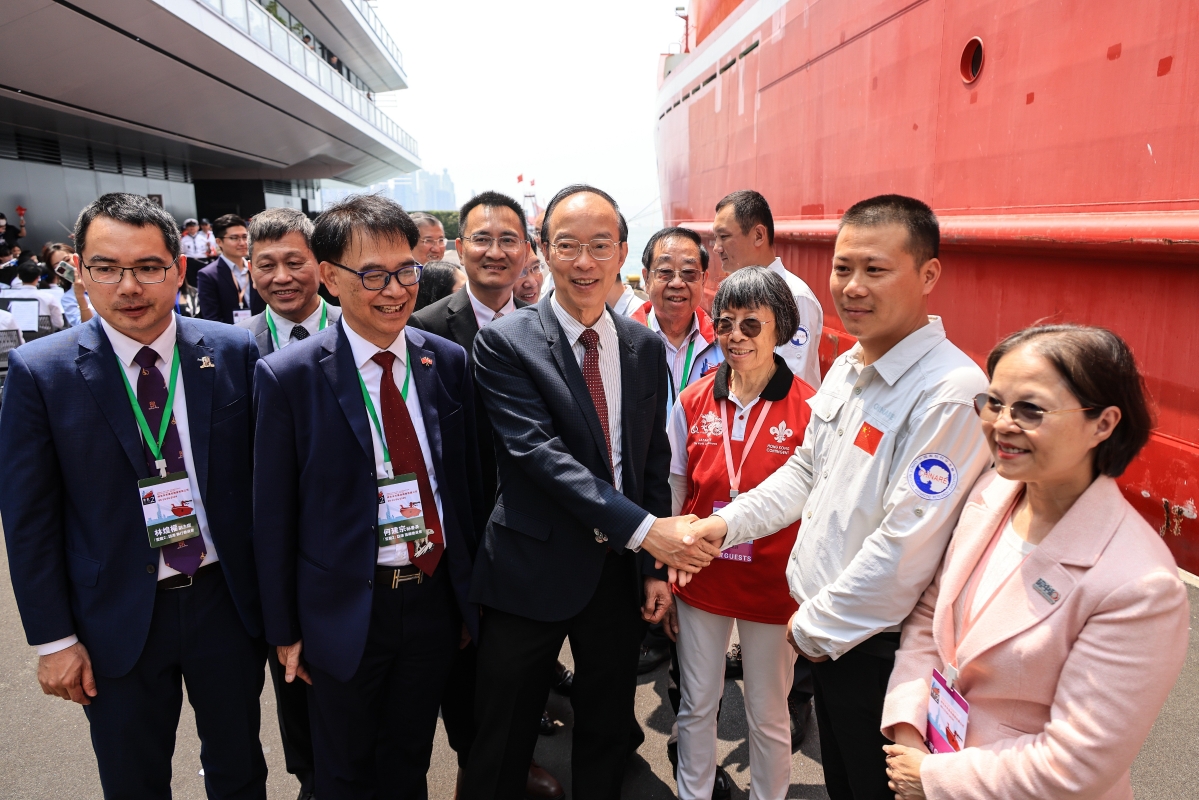 “雪龍2 ”號訪港籌委會主席馬逢國、“雪龍2 ”號訪港執委會主席何建宗及環境及生態局副局長黃淑嫻等送行