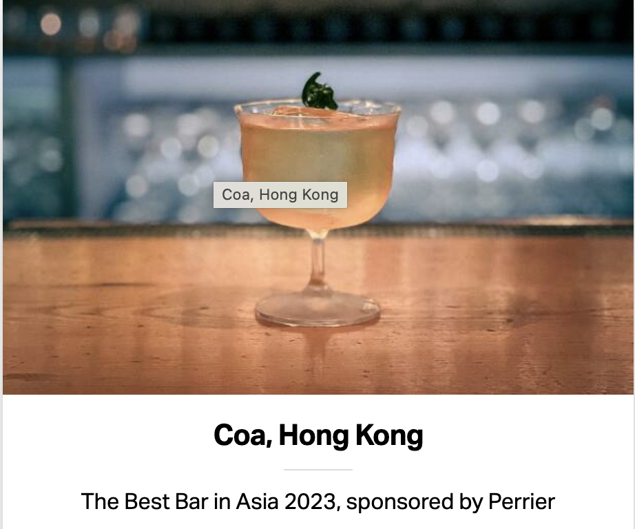 今年在香港舉辦的活動,重要環節包括將於 Asia’s 50 Best Bars 2024 揭幕前一晚舉行的 Bartenders’ Feast(調酒師盛宴)。 主要活動將在翌日7月16日舉行,屆時會有踏紅地毯環節、訪問及接待 酒會,最後是頒獎典禮和萬眾矚目的酒吧排名倒數。去年的頒獎典禮由香港的 Coa 封王,獲封為 The Best Bar in Asia(亞洲最佳酒吧),該酒吧自2021年以來連續三年蟬聯榜首。(完) 【編輯:陈卓仪】