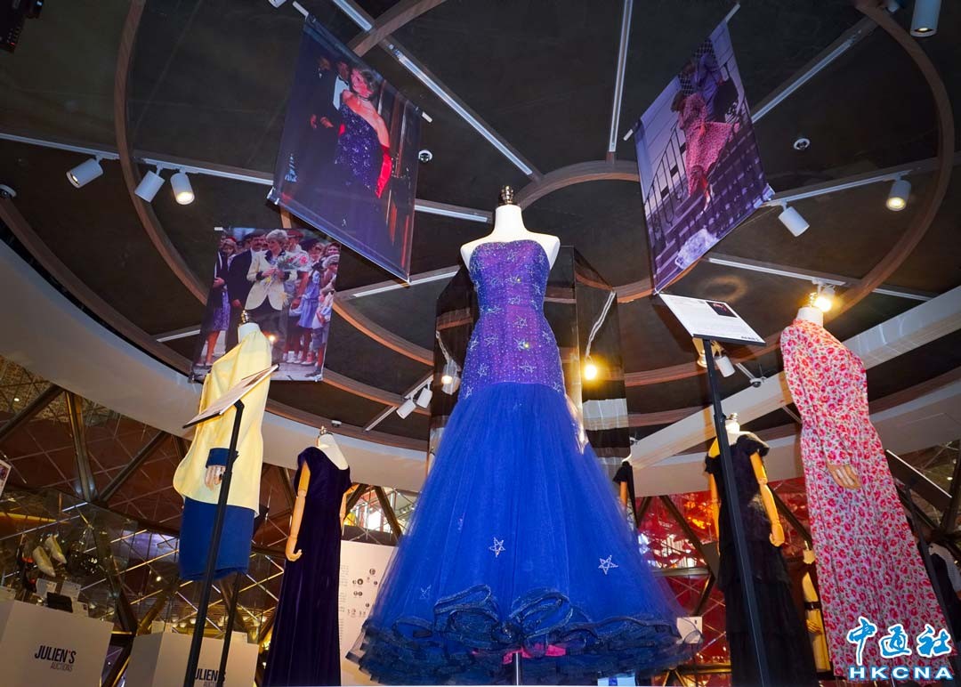 4月17日,“優雅經典:黛安娜王妃及皇室收藏”在香港K11 MUSEA展出,涵蓋戴安娜王妃最著名和曝光率最高的晚禮服、套裝、鞋履、手袋及配飾等。(香港中通社記者 曹文毓攝)