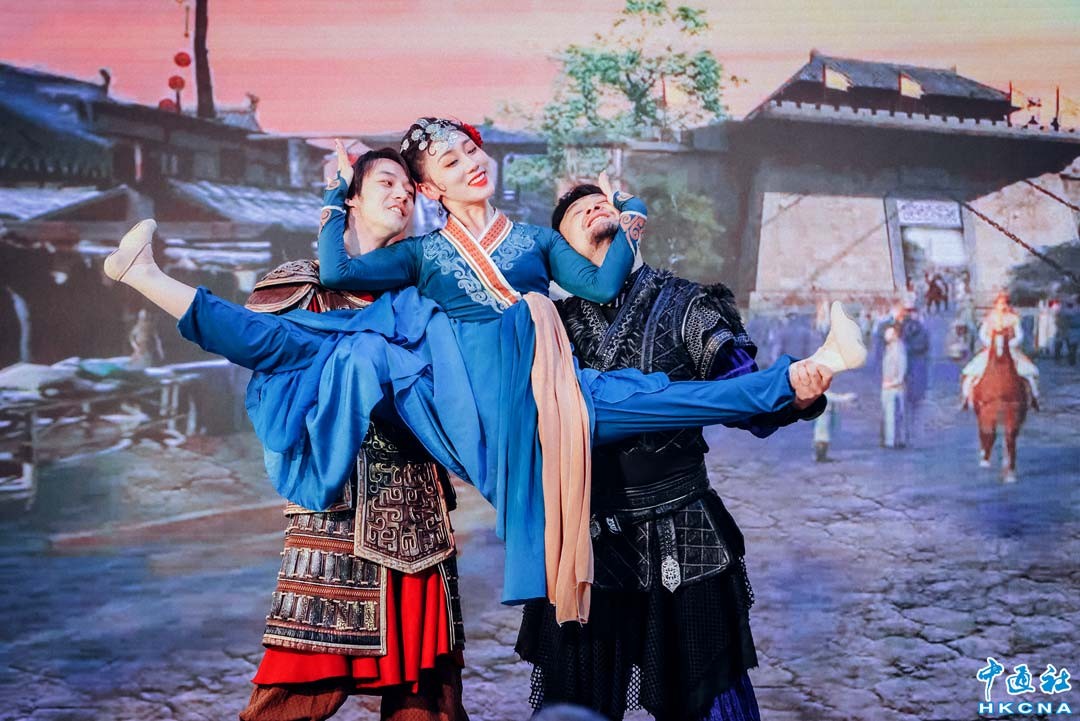 4月18日,由香港特別行政區政府文化體育及旅遊局呈獻、康樂及文化事務署策劃的首屆“中華文化節”舉行節目巡禮,簡介文化節內容。圖為演出藝團示範表演,舞劇《五星出東方》選段。(香港中通社記者 謝光磊攝)