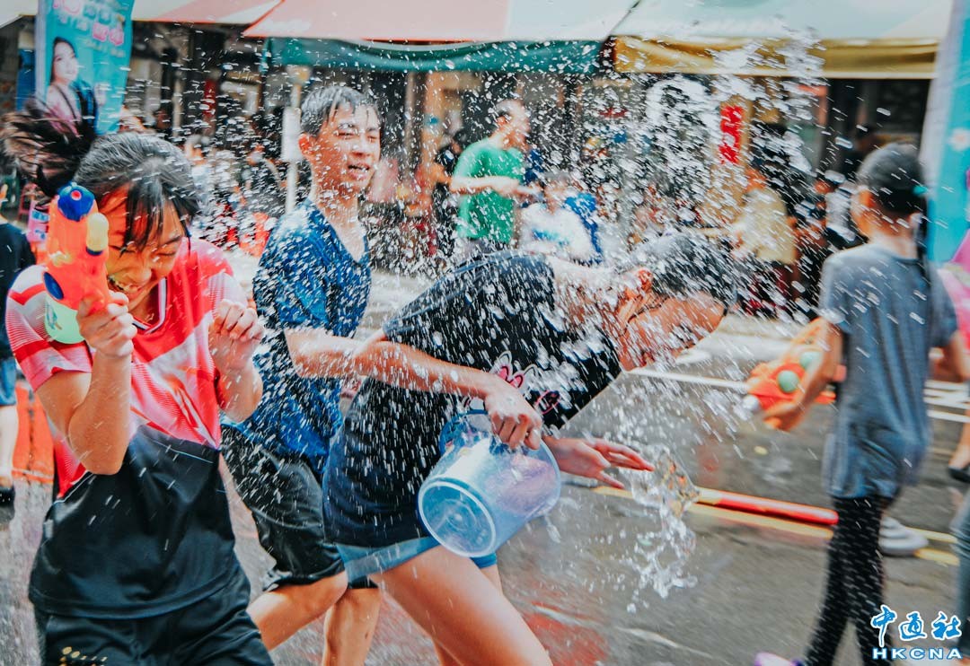 “緬甸新年浴佛活動”4月21日在台灣新北市中和區華新街舉行,民眾對彼此潑水祝福,祈求來年順利,並以歌舞與美食共同慶祝緬甸新年。 香港中通社圖片