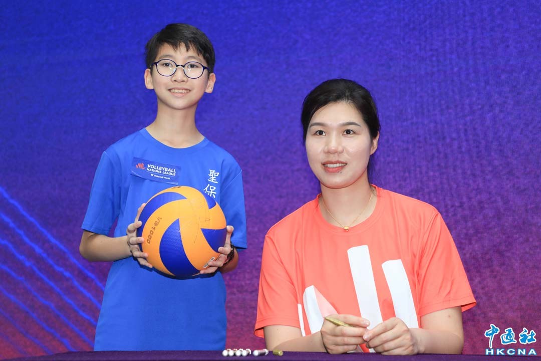 4月27日,前中國女排隊員徐雲麗(右)在香港為球迷簽名。(香港中通社記者 許其皓攝)