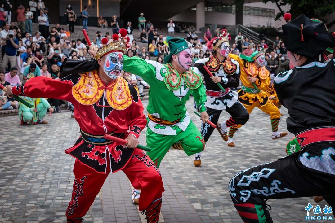 4月29日,由香港揭陽同鄉社團總會、九龍西潮人聯會、油尖旺民政事務處聯合主辦的“甲辰龍年中華戰舞英歌情”活動在尖沙咀香港文化中心露天廣場舉行,市民可欣賞傳統正宗普寧泥溝英歌舞表演。英歌舞是廣東潮汕地區獨有的民間舞蹈,融合了戲曲、武術和舞蹈等多種藝術元素,以其獨特的韵味和生動的表現力深受人們喜愛,被推崇為“中華戰舞”,英歌舞在2006年被列為首批國家級非物質文化遺產。(香港中通社記者 謝光磊攝)