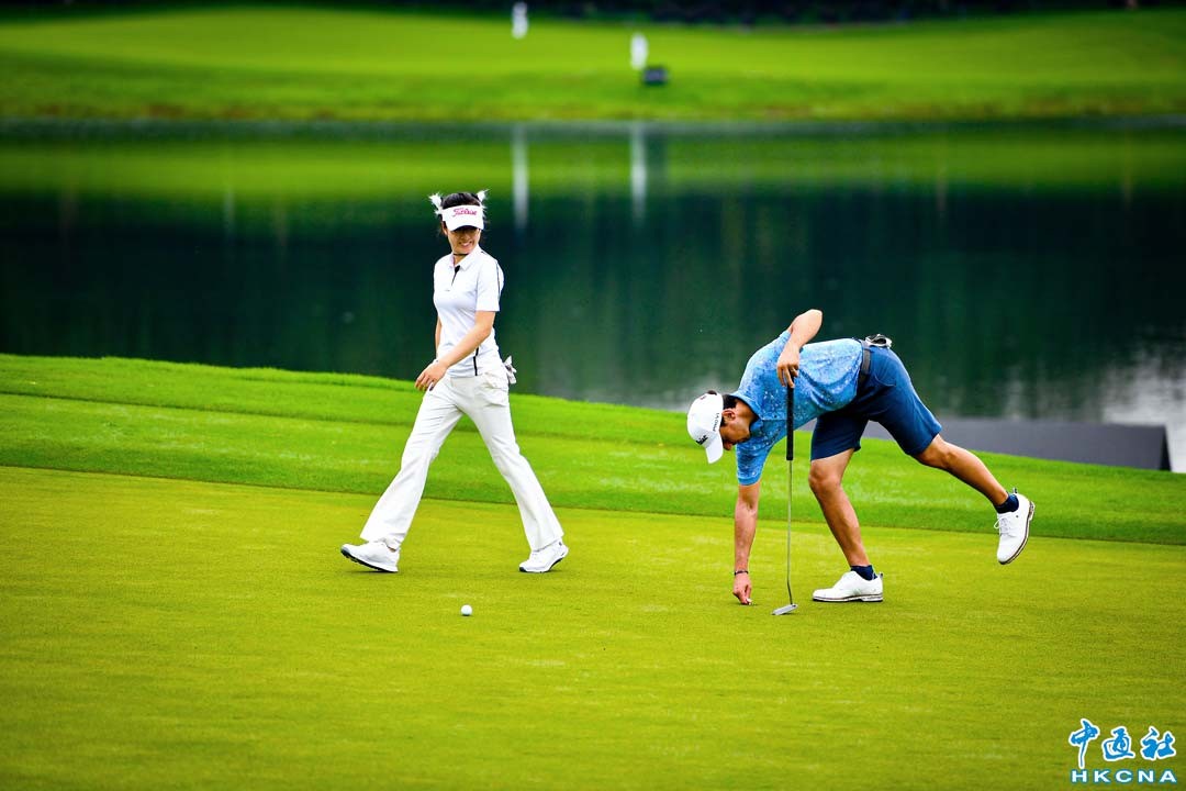5月1日,第29屆沃爾沃中國公開賽職業業餘配對賽在廣東深圳隱秀高爾夫俱樂部舉行。2024年沃爾沃中國公開賽由中國高爾夫協會主辦,總獎金225萬美元,該賽事也是DP世界巡回賽五年來首次返回中國舉辦。圖為配對賽選手在比賽中。(聞子 攝)