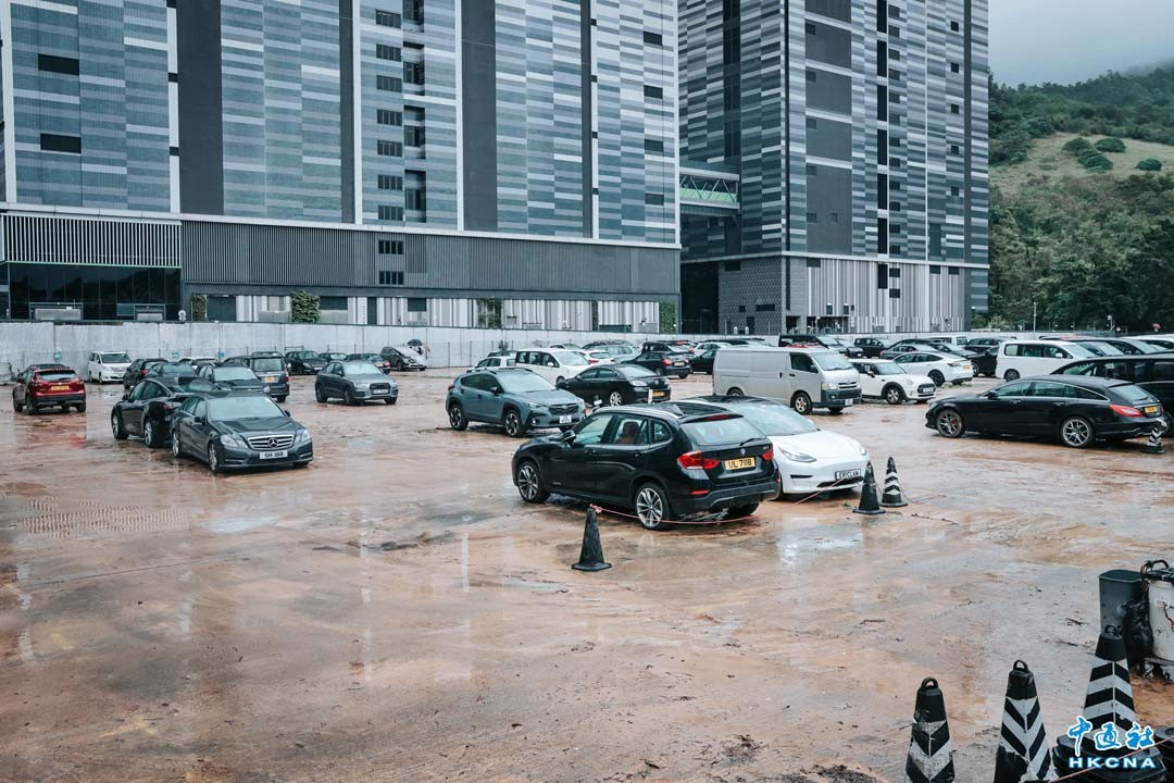 5月4日,受高空擾動影響,本港天氣不穩定,香港天文台於上午8時55分發出紅色暴雨警告信號。西貢區的雨勢特別大,其中將軍澳有特大暴雨,過去一小時已錄得超過140毫米雨量。將軍澳多地出現嚴重水浸,日出康城外一個露天停車場全被黃泥水淹浸,水深高達半架車,附近道路亦受水浸影響。經渠務署人員緊急清理後,情況已經受控,積水已經逐漸散去。截至現時為止,政府沒有收到任何傷亡報告。(香港中通社記者 謝光磊攝)