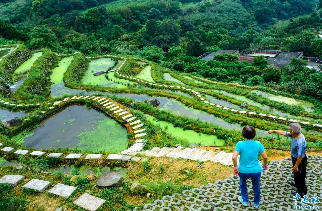 台灣新北市最大百年梯田-石門嵩山,是百年前當地居民利用陽明山火山岩石砌成的梯田,也是台灣唯一的石砌梯田。在大山環抱的山谷中,層層疊疊依山勢蜿蜒的梯田,由一塊塊石頭層疊交錯出形成的美麗稻田幾何圖案。香港中通社圖片
