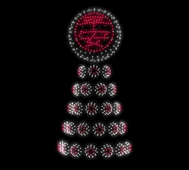 旅發局無人機表演模擬圖片。 由無人機組成的立體包山高約60米,比傳統大包山大4倍,壯觀搶眼,包山頂部更有一個直徑達30米的巨大平安包。無人機亦會展示到廟宇祈福的節日傳統、靈活舞動的醒獅等,寓意平安順利吉祥。
