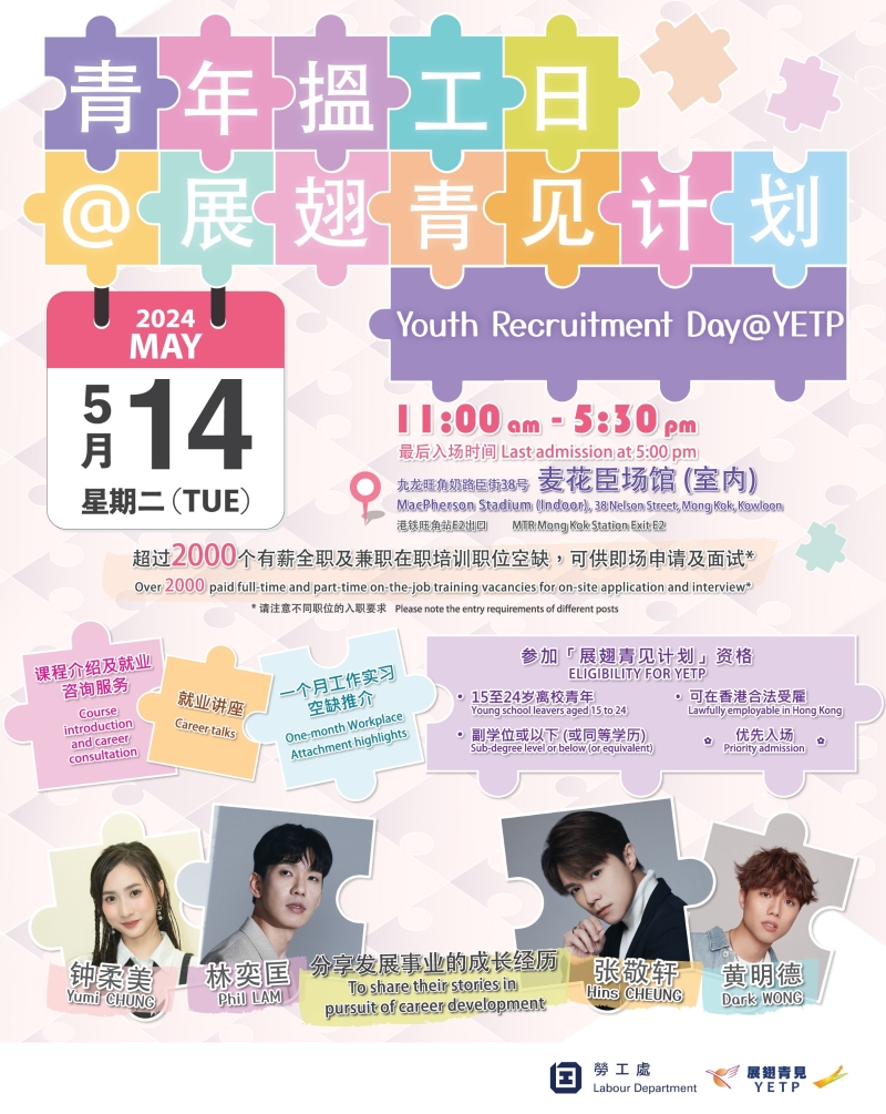 參與機構提供的職位空缺種類廣泛,包括營運見習生、見習飛機維修員、咖啡調配員、調茶師、客戶服務主任、遊樂設施服務大使、工程技術員及助理會所主任等,大部分全職職位的月薪介乎1.2萬港元至2萬港元,無需相關工作經驗。歡迎15至24歲,學歷在副學位或以下的求職者即場遞交申請,求職者有機會即場獲邀面試。 勞工處亦會設攤位介紹“展翅青見計劃”,包括計劃下的工作實習訓練、特別就業項目、勞工處在職培訓職位空缺等。合資格青年可即場登記加入計劃,場內亦有多間服務機構協助他們揀選和報讀合適的培訓課程,及提供履歷表諮詢及就業輔導服務等。 此外,招聘會設有多場就業講座,介紹不同行業的前景與特色。勞工處更邀得嘉賓張敬軒、林奕匡、鍾柔美及黃明德到場出席,向參加者分享發展事業過程中的經驗,勉勵青年以堅持不懈的精神,把握機會,實踐理想。分享環節以粵語進行,活動座位有限,“展翅青見計劃”服務對象優先入場。 招聘會於上午11時至下午5時30分在旺角奶路臣街三十八號旺角麥花臣場館(近旺角港鐵站E2出口)舉行,免費入場,最後入場時間為下午5時。詳情可瀏覽計劃網站www.yes.labour.gov.hk。(完) 【編輯:譚暢】