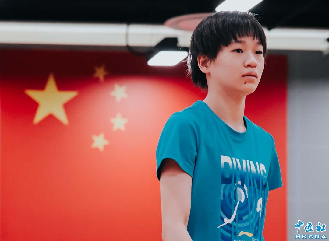 結束了於西安舉行的世界泳聯跳水世界杯總決賽後,中國跳水隊返回北京調節休整,同時全力備戰巴黎奧運會。5月7日,中國跳水隊主力王宗源、全紅嬋、陳芋汐在訓練之余接受媒體採訪,分享了巴黎奧運會的備戰情況。圖為全紅嬋在訓練中。(香港中通社記者 謝光磊攝)