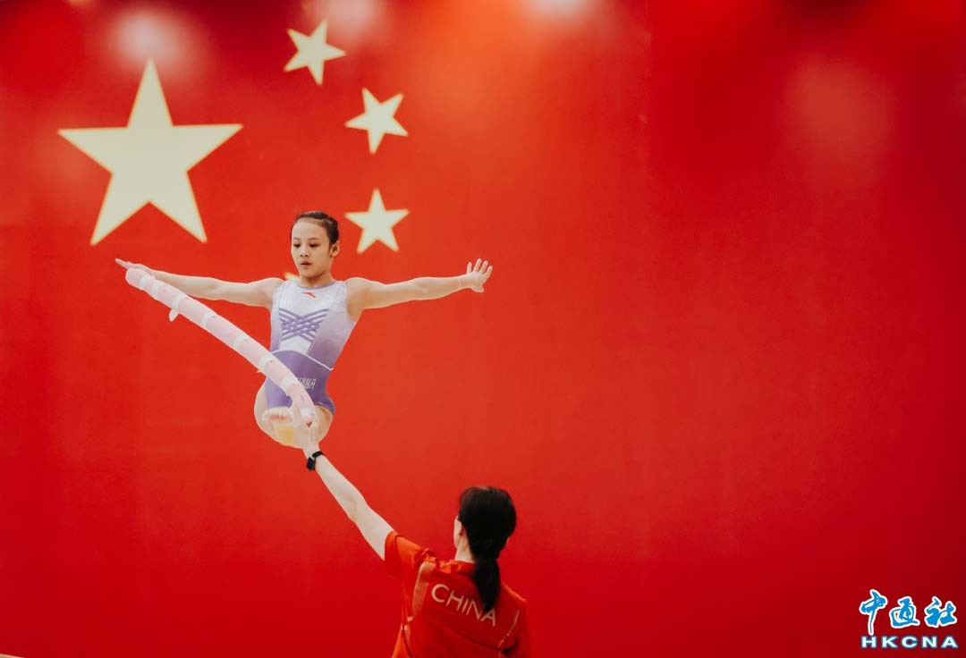 5月8日,中國體操隊在國家體育總局訓練局體操館訓練,備戰巴黎奧運會。圖為中國體操隊隊員邱祺緣在訓練中。(香港中通社記者 謝光磊攝)