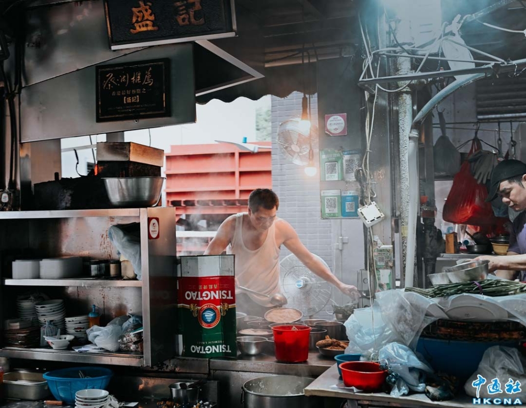 香港大牌檔一向是平民百姓的美食天堂,開設在中環一處橫街的多家大牌檔,提供各式各樣風味小炒,豐富的小炒菜式快捷簡單,受到訪港遊客和上班一族的喜歡。由於政府已停發大牌檔牌照,傳統大牌檔漸漸成為消失的香港文化,現時只剩下20多家,不過持牌人的後代仍可繼承牌照,將這份老香港風味延續下去。 (香港中通社記者 洪少葵攝)