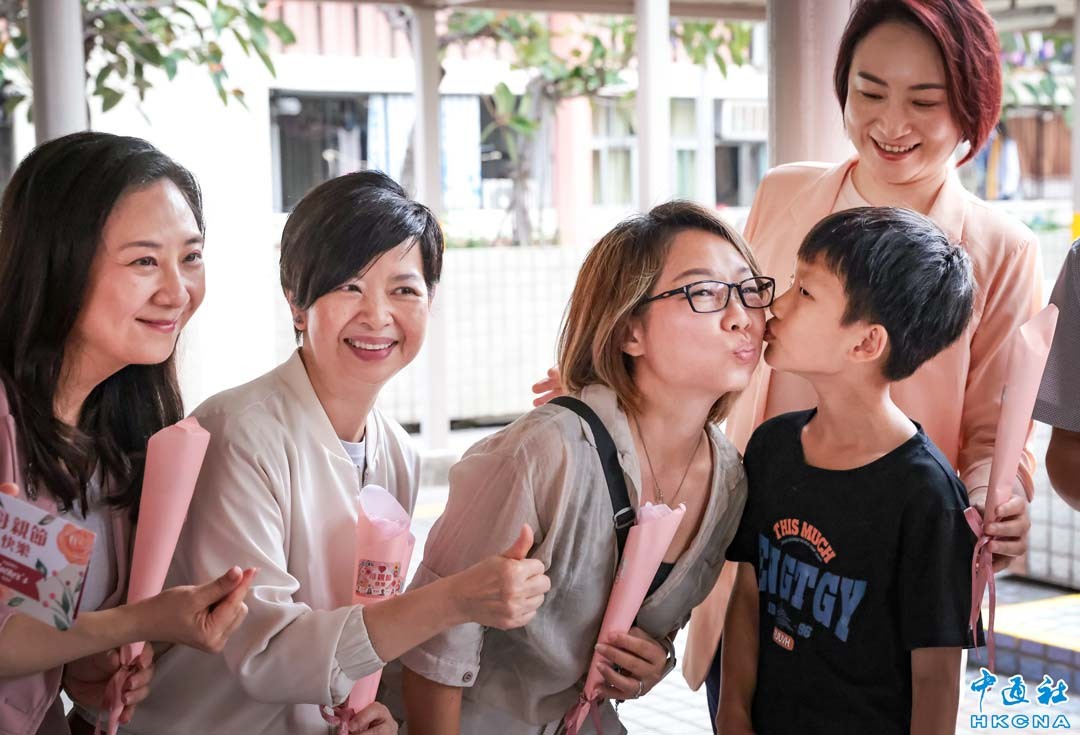 5月12日是母親節,香港特區政府房屋局局長何永賢與民建聯立法會議員李慧琼、葛珮帆、顏汶羽等人,參與“溫馨五月 感恩母親”活動,到訪沙田禾輋邨及酒樓,向婦女派環保番梘花和心意卡,向全港母親聊表心意,祝願天下媽媽“母親節快樂”。當日民建聯舉行發布會公布一系列爭取婦女政策。(香港中通社記者 謝光磊攝)