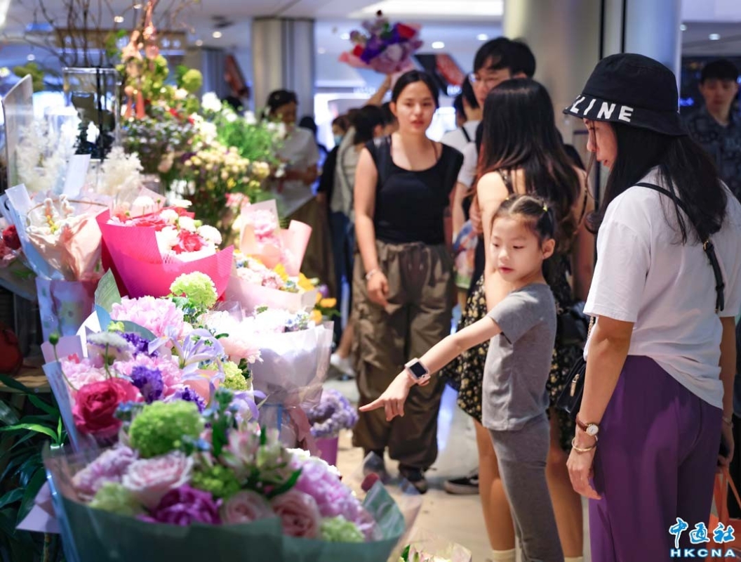 5月12日是母親節,深圳一間鮮花鋪不少顧客前來購買鮮花。(香港中通社記者 曹文毓攝)