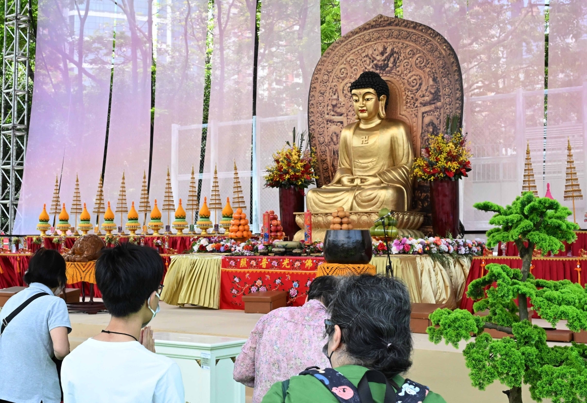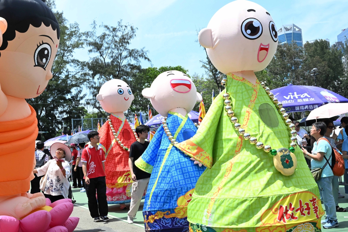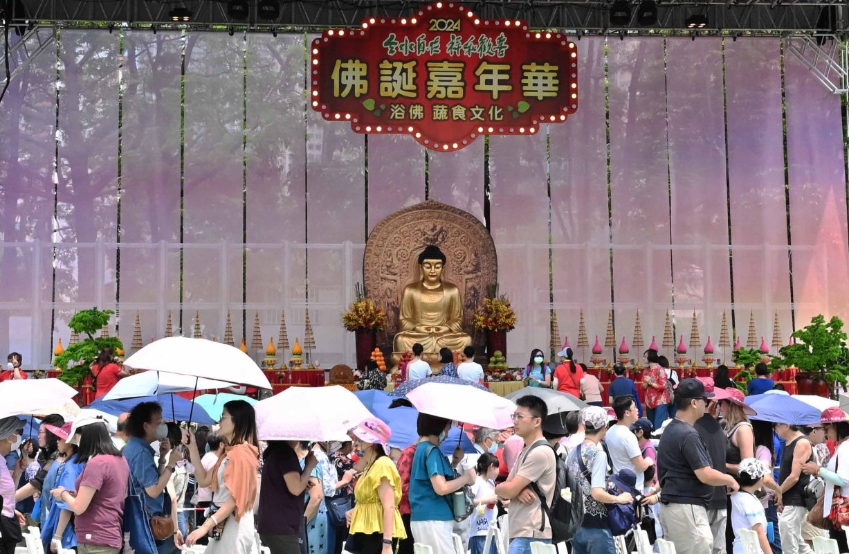 香港新聞網5月15日電(記者洪少葵) 5月15日,香港“佛誕”公眾假期,維園“佛誕嘉年華2024”當天假維多利亞公園舉行,場內設有一百個攤位,包括亞洲美食坊、美味蔬食、慈善義賣、親子互動遊戲、祈福鐘、人間佛教文化藝廊、生活禪、健康諮詢、千人積木拼圖接力等。另外,亦有文化藝術團體進行表演及浴佛淨心、抄經、雲水書車閲讀等多項洗滌心靈的活動。佛誕又稱“浴佛節”。每年佛誕,香港的佛堂寺廟和佛教團體均會舉行一系列的禮佛慶祝活動,包括環保與心保佛誕嘉年華。