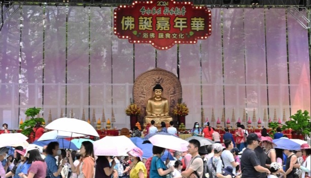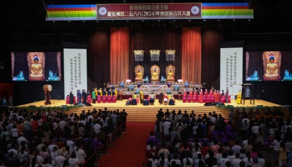 圖為當日,大批善信在紅館戶外廣場參與祈福、浴佛儀式。香港中通社图片 當日,政務司司長陳國基、民政及青年事務局局長麥美娟等出席主禮,共同敲響場內吉祥鐘三響,祝願佛光普照、天下太平、祖國富強、香港繁榮穩定。 陳國基致辭表示,適逢中華人民共和國成立七十五周年,吉祥法會除了讓市民積功德外,亦向祖國和香港送上誠摯祝福,別具意義。安全是發展的基礎,穩定是強盛的前提,他有信心佛聯會繼續與政府一同做好更多惠民生、暖民心的工作。 今年法會亦為“止戰息爭,世界和平”誦經,將於16日舉行金剛經吉祥誦經法會,匯聚大眾願力,誠心為一切戰爭災民及罹難者誦經。 佛聯會會長寬運法師指出,環看世界大局,國際局勢多變,大小戰爭每日發生,市民要對苦難生起憐憫心和慈悲心。遠方的戰爭讓我們明白,只有社會和平安定,人民才能豐衣足食,要格外感恩可以生活在香港這片福地。 活動并設有佛學講座、傳燈法會、萬人皈依和懺摩法會等。紅館戶外廣場還有公眾浴佛區、祈福區、抄經區及慈善籌款攤位。 香港因佛誕而放假一天。回歸前,香港只有西方宗教假期,如聖誕節、復活節等,卻沒有中國傳統宗教假期。經過佛教界人士的努力爭取,回歸後,終於1999年開始將農曆四月初八的佛誕列為公眾假期。每年佛誕前後,香港佛教聯合會和其他佛教團體,都會舉辦系列慶祝活動。 位於大埔的慈山寺舉行3天開放日,歡迎各界來慈山寺浴佛離塵,懺悔行願。寶蓮禪寺的天壇大佛喜迎開光30周年,推出浴佛儀式、大悲法會,及免費素齋等多項慶祝活動。 民間慶典活動則更豐富多彩,香港東區慶賀譚公寶誕的重頭戲“譚公誕巡遊”。當日有超過50支獅隊及舞龍賀誕,途徑街道熱鬧非凡,一旁的市民會摸摸獅頭,以求好運。 於維多利亞公園舉行的佛誕嘉年華,則設有逾百個攤位,包括慈善義賣、人間佛教文化藝廊、生活禪、抄經許願。入場善信可參與浴佛淨心、撞鐘祈願、雲水書車閲讀等多項洗滌心靈的活動。(完) 【編輯:馬華】