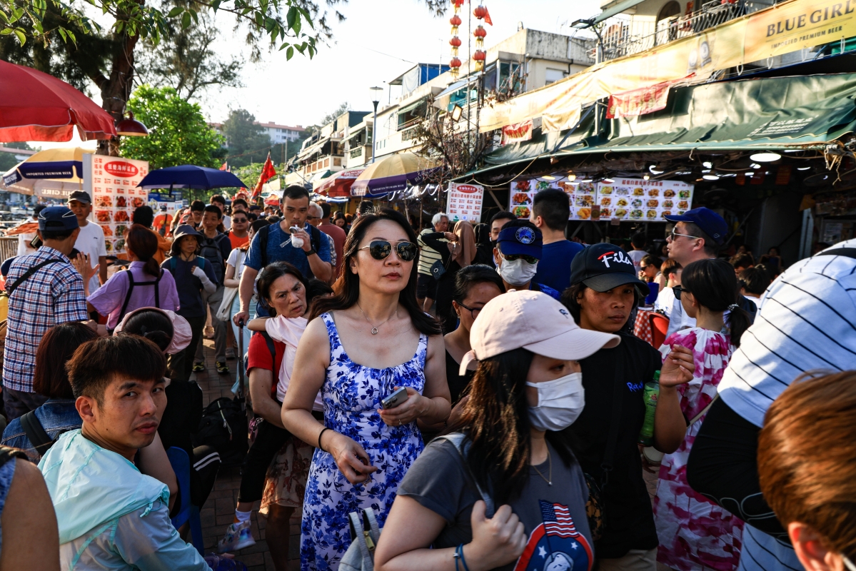香港天氣晴好,不少市民和旅客到長洲島休閒度假