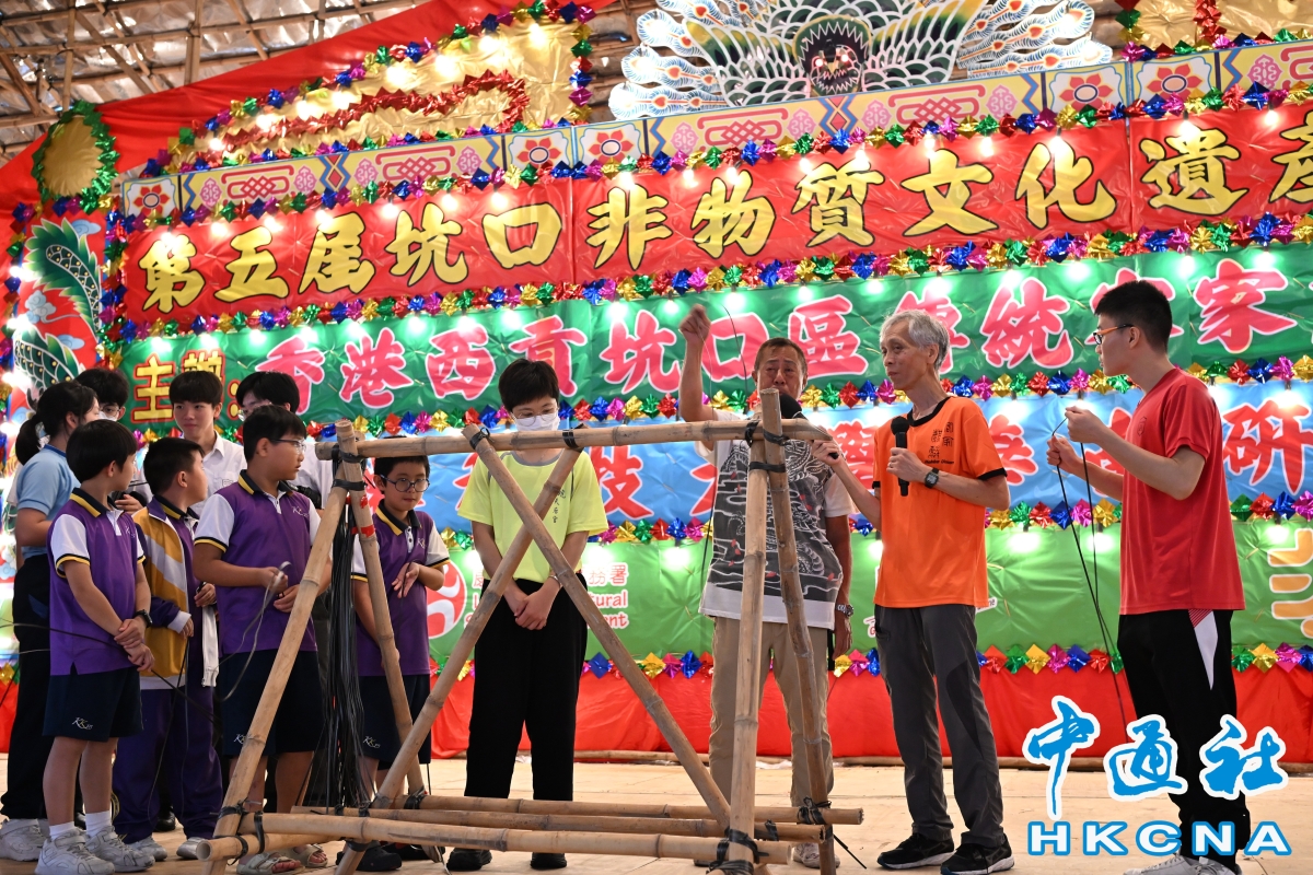 香港新聞網5月22日電 (呂紀星)第五屆坑口非物質文化遺產活動日,21日在坑口村停車場戲棚舉行。活動由香港西貢坑口區傳統客家麒麟協會主辦,香港科技大學華南研究中心協辦,涵蓋如花牌紮作技藝、麒麟紮作技藝等香港非物質文化遺產。