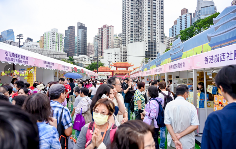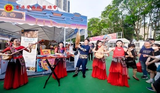 香港新聞網6月3日電 香港家鄉市集嘉年華6月1日至5日在銅鑼灣維多利亞公園如火如荼地展開。香港廣西社團總會今年再攜手其他香港省級同鄉社團總會,認真籌劃和準備,為香港市民精心組織奉獻的一場具有廣西壯族自治區特色文化盛宴。 豐富多彩的特色文藝表演、非遺展示、特產展銷、美食休閑、親子游樂……總會意在端午節來臨之際為香港同胞和游客送上濃濃的節日祝福,讓他們在家門口品嚐家鄉風味,沉浸式體驗中華優秀傳統文化的博大精深,充分感受到香港中西文化合璧的多元特色和獨有魅力及故鄉濃情,更加了解廣西、喜歡廣西。