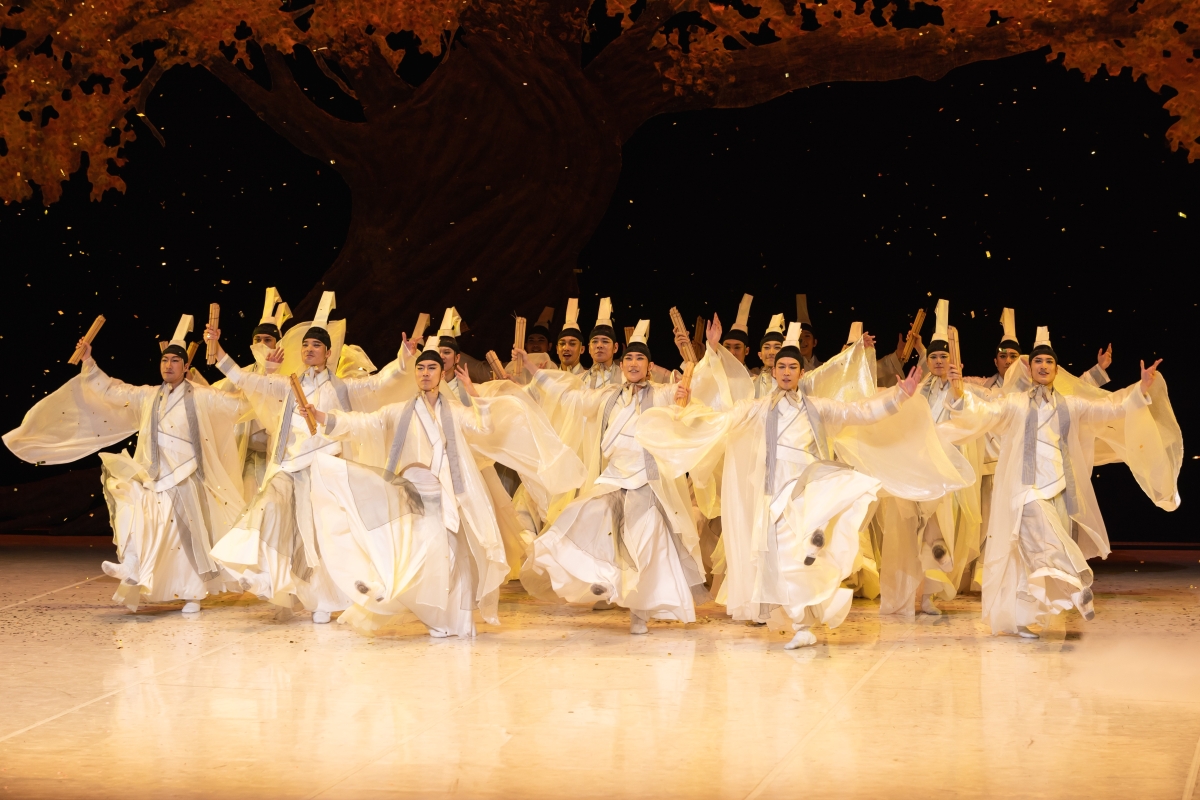 圖片來源:主辦方供圖 這部劇用中國古典舞的力量和美感,帶觀眾走近孔子和儒家文化,感受到中華五千年文化傳承帶來的深遠影響。開場舞《執羽》,再現了先秦樂舞“羽舞”的宏大場景;男子舞蹈《頌賢》,體現了賢士雲集、以文會友、作詩唱賦的逍遙場景;女子舞蹈《采薇》,以仕女們妙曼的舞姿,呈現昔日楊柳青青,四處盎然生機的動人場景;經典的《玉人舞》表現孔子所言“君子如玉”的理想品德,讚頌了光華內斂、不彰不顯的君子人格。
