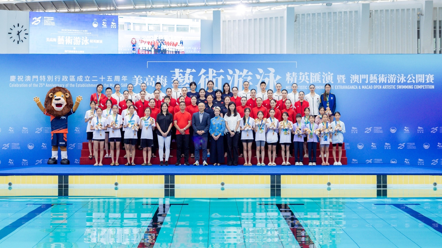 香港新聞網6月24日電 由美高梅呈獻、中國澳門游泳總會主辦,澳門特別行政區政府體育局鼎力支持,一連三日假氹仔奧林匹克游泳館盛大舉行的澳門體藝文旅盛事“慶祝澳門特別行政區成立25周年 —— 2024美高梅藝術游泳精英匯演暨澳門藝術游泳公開賽”23日圓滿落幕。 閉幕式上,三隊頂尖花泳隊伍“北京花樣游泳隊”、“江蘇花樣游泳隊”和“四川花樣游泳隊”再度獻上“精英匯演”,為活動畫下完美句號。美高梅於賽後首設“藝術游泳大師班”技術交流環節,讓參賽的花泳選手直接向國家級健將領教,以此打造澳門成為大灣區藝術游泳運動的重要交流平台。