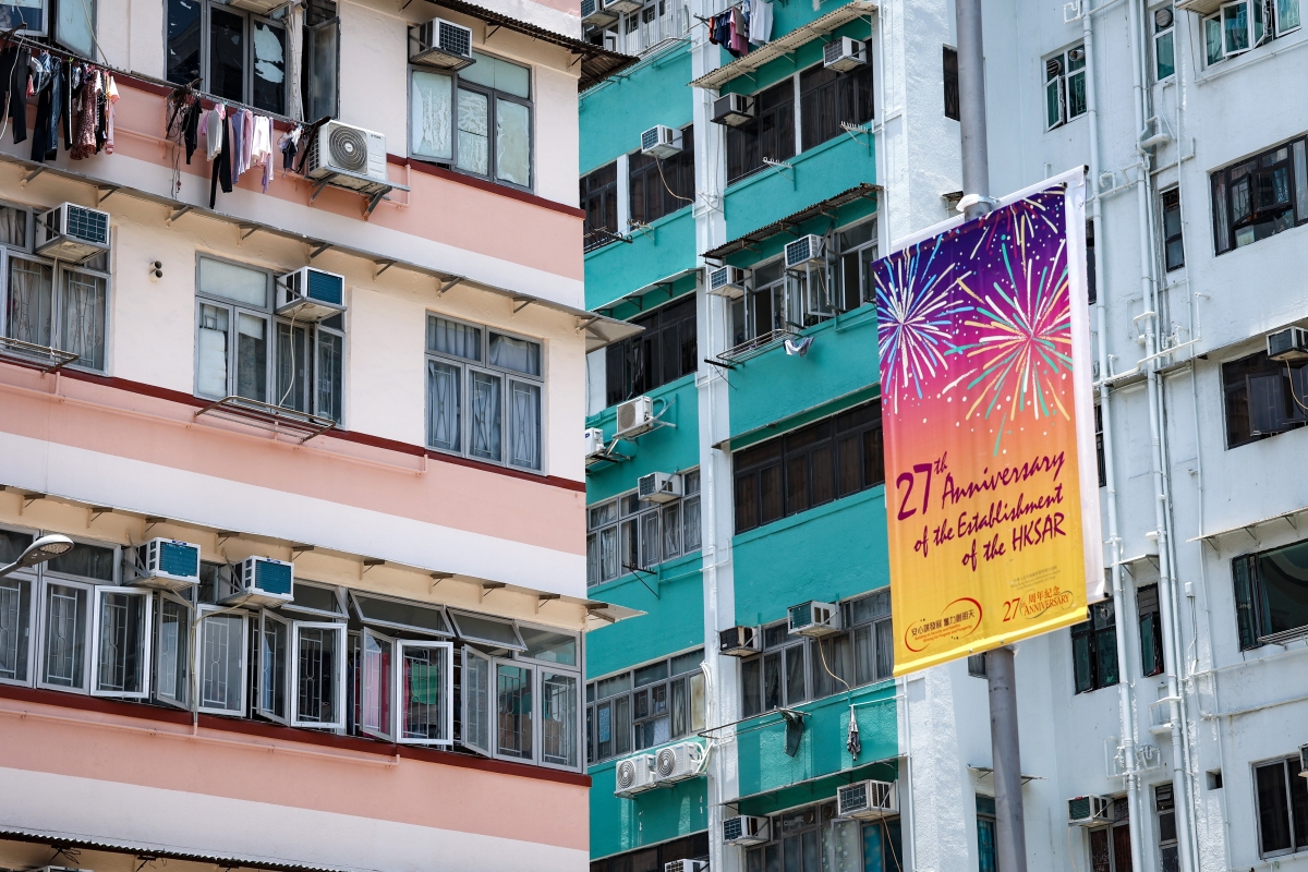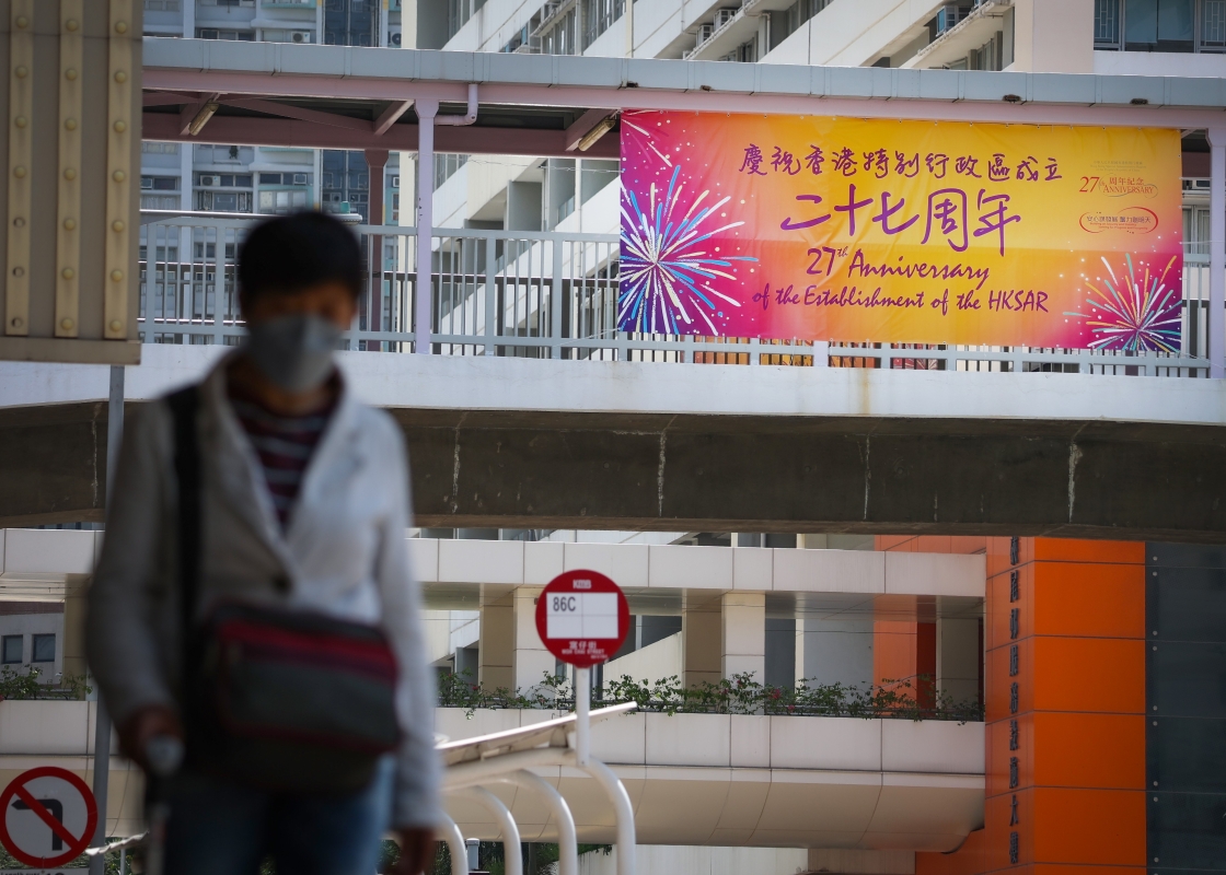 (回歸27年)慶回歸標語為香港深水埗街頭添一抹暖色分享到: