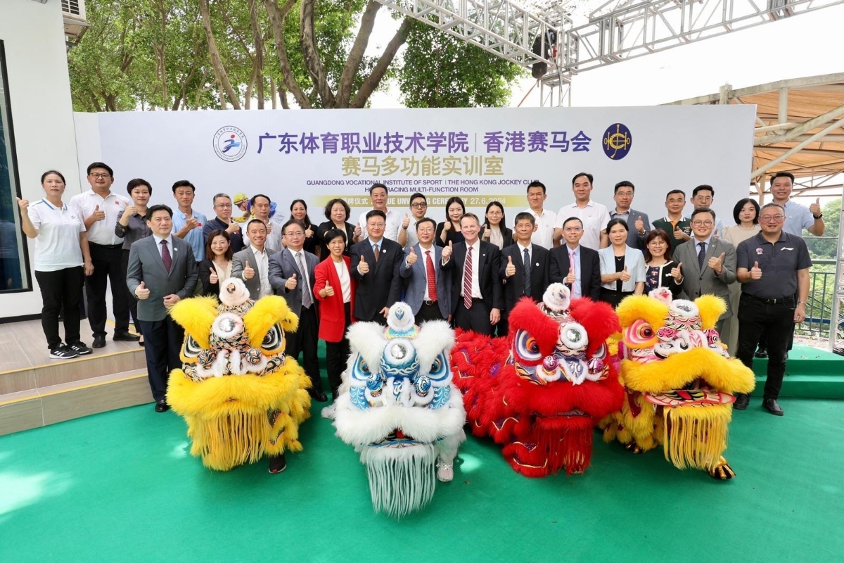 香港新聞網6月27日電 6月27日,廣東體育職業技術學院-香港賽馬會賽馬多功能實訓室揭牌儀式在廣東體育職業技術學院順利舉行。該實訓室將成為香港賽馬會與學校合辦的“運動訓練專業賽馬方向”雙軌制課程的培訓基地。將於今年九月開始的課程以“校企合作”的模式培養賽馬人才,體現大灣區職業教育合作的進一步發展,為促進大灣區馬產業人才培養作出積極貢獻。 廣東省教育廳副廳長馮偉、香港學術及職業資歷評審局經理總幹事周慶邦、廣東體育職業技術學院黨委書記馬國川、香港賽馬會賽馬事務執行總監夏定安、廣東體育職業技術學院校長徐佶、廣東開放大學學分銀行管理中心主任李雪嬋、香港賽馬會賽馬人才培訓主管暨見習騎師學校校長陳念慈等領導與嘉賓出席了儀式。