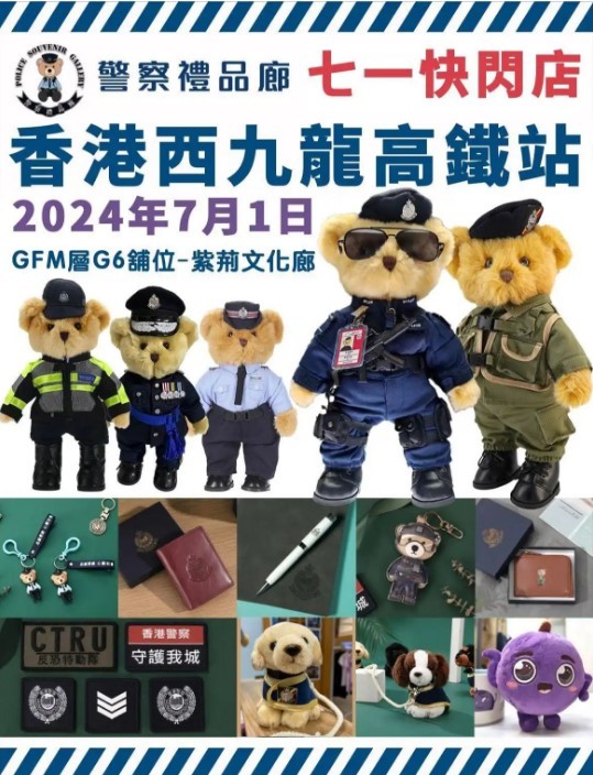 香港新聞網6月28日電 香港警察禮品廊7月1日將“快閃”西九龍高鐵站,有超多受歡迎的紀念品,警察小熊、筆記本、磁石貼、鑰匙扣······應有盡有!