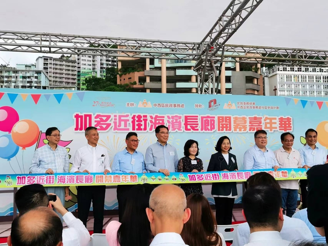 香港新聞網6月28日電 (呂紀星)香港“加多近街海濱長廊”28日正式落成啟用,特區政府民政及青年事務局局長麥美娟等多位政府官員及立法會議員出席開幕典禮。堅尼地城海濱進一步擴展開放,為區內外市民提供更多公共空間。 全新啟用的“加多近街海濱長廊”全長約280米,24小時開放。海濱長廊設有遮蔽座椅,氛圍悠閒寧靜,到訪市民能邊漫步邊飽覽維港西面及青馬大橋的景色,更能欣賞到絕美日落海景,感受香港都市生活的另一面。