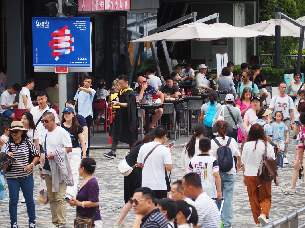 香港新聞網6月29日電(記者洪少葵)為慶祝7月1日香港特區成立二十七周年,民政事務總署聯同社會各界會在十八區舉辦各式各樣的精彩活動,與眾同樂、共慶回歸。6月29日,香港一連3天的連假開啟,各區彩旗飄揚,人山人海,市民和遊客絡繹不絕,一派節日景象。當天,尖沙咀文化中心和海濱一帶商圈,不少內地旅遊團在瀏覽維港風光,網紅打卡點更是排隊拍照。7月1日開始,來香港旅遊的旅客能享受香港回內地高達1.5萬元人民幣的最新免稅額度。為配合免稅額提高,旅發局將於7月11日推出“香港·樂在當夏”項目,送出50萬份禮遇,總值超過1億元,吸引旅客來港及提振消費。 近日,財政司司長陳茂波表示,2024年首五個月訪港旅客人數逾1,800萬人次,全年舉辦的各項盛事估計會吸引170萬旅客參與。中央政府增加個人遊城市至59個,有望帶來更多過夜旅客,惠及零售和餐飲行業。