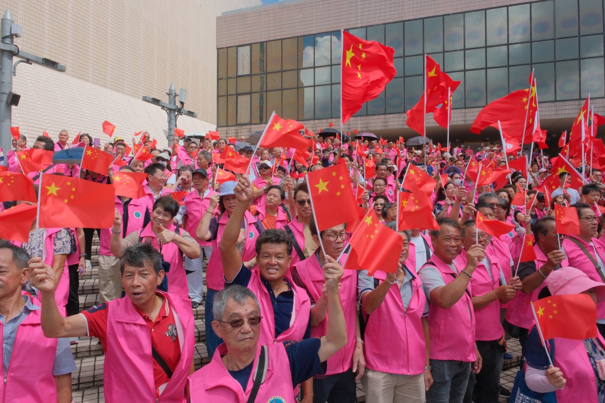 大批市民在尖沙咀海濱揮舞中華人民共和國國旗和香港特區區旗,慶祝香港回歸祖國27周年 【編輯:洪少葵】