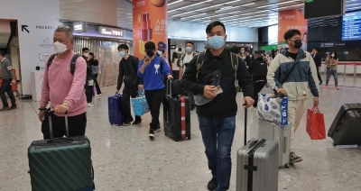 旅客在香港西九龍高鐵站入境