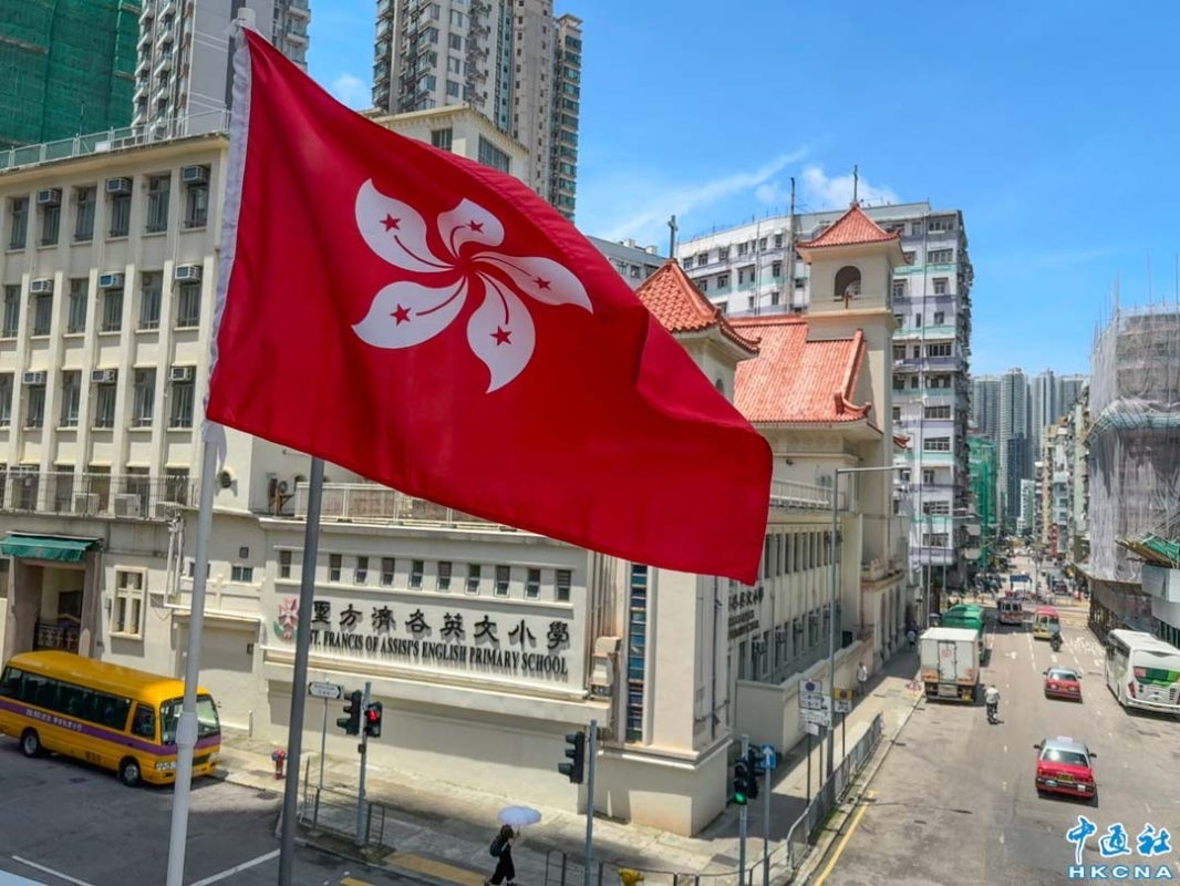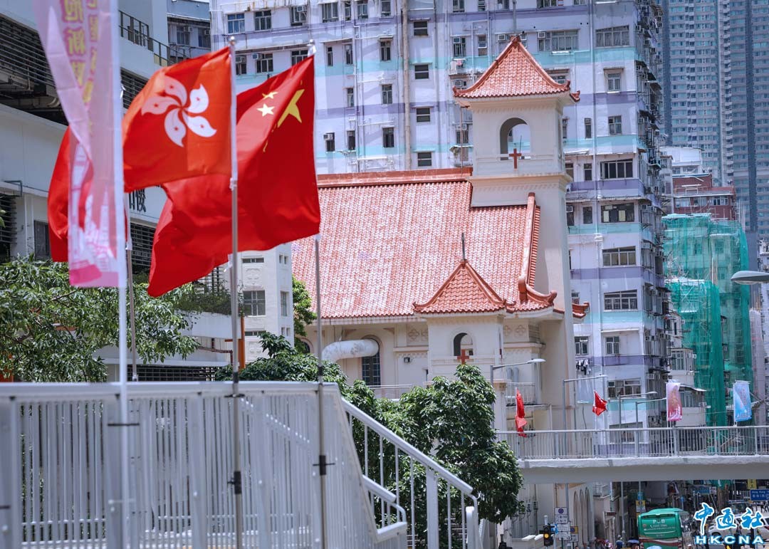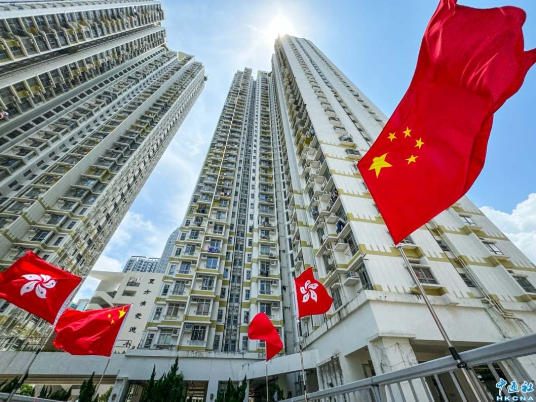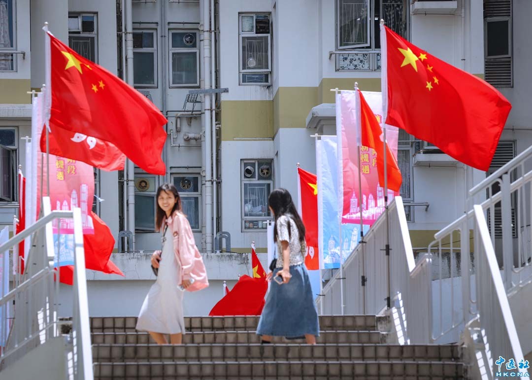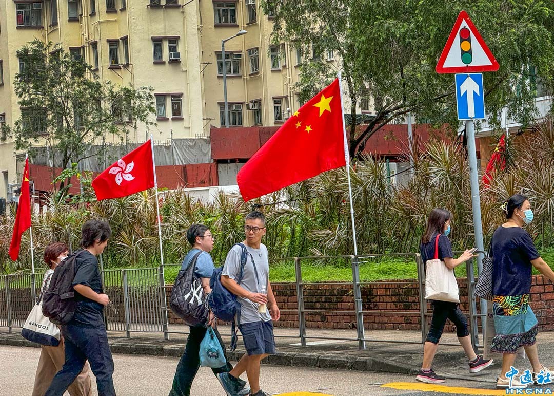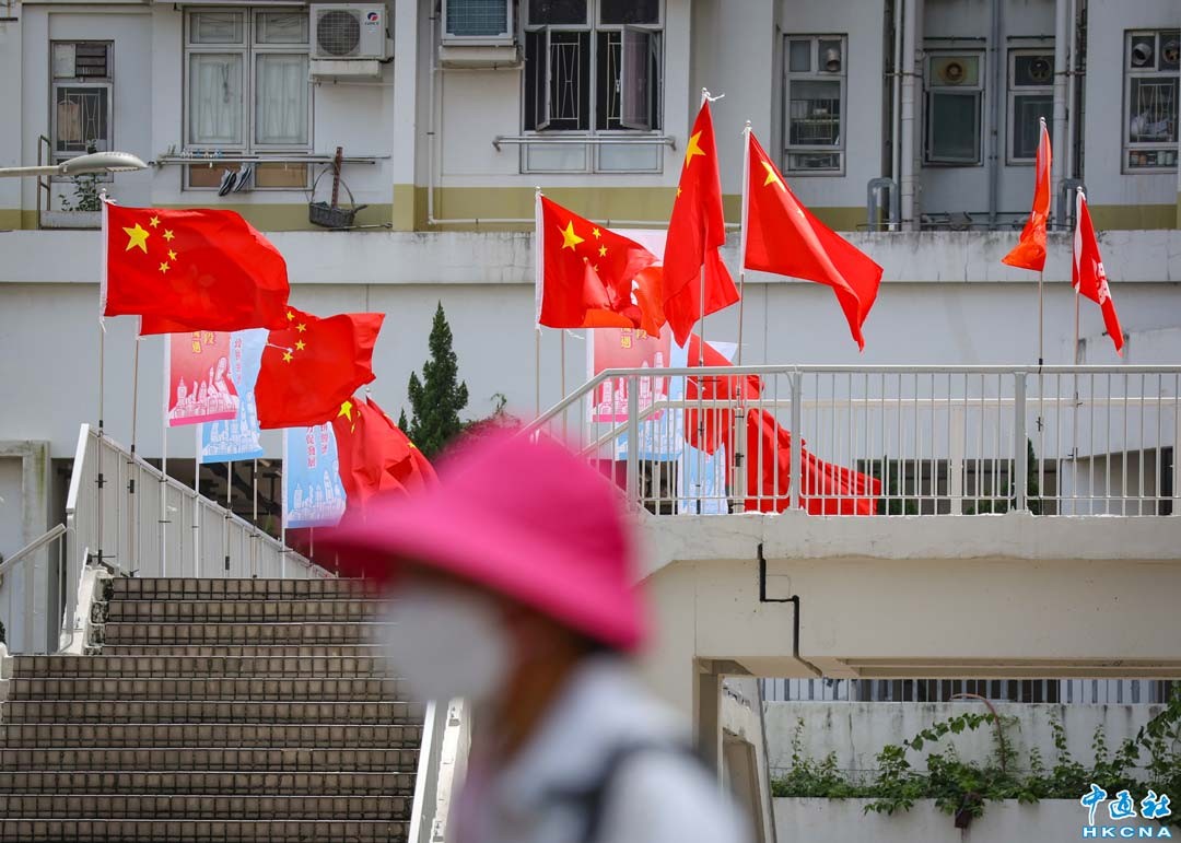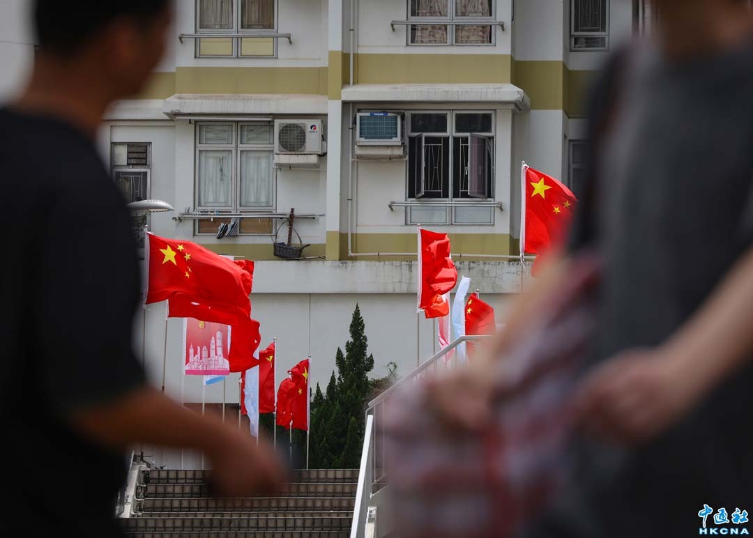 (回歸27年)香港深水埗旗海飄揚慶回歸