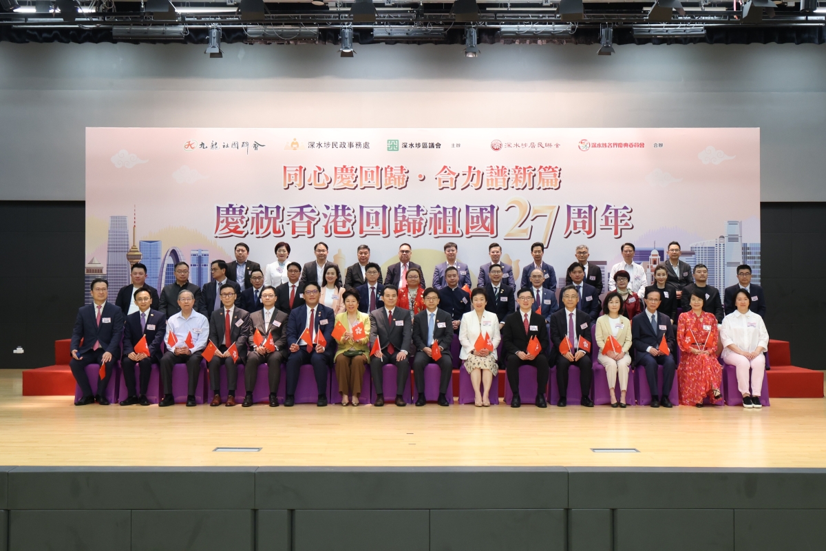 (回歸27年)“同心慶回歸.合力譜新篇”慶祝香港回歸祖國27周年香港新聞網7月1日電 為慶祝香港特別行政區回歸祖國27周年,由九龍社團聯會、深水埗民政事務處、深水埗區議會主辦,深水埗居民聯會、深水埗各界慶典委員會合辦“同心慶回歸.合力譜新篇”慶祝香港回歸祖國27周年”慶祝活動於7月1日下午假深水埗體育館舉行。