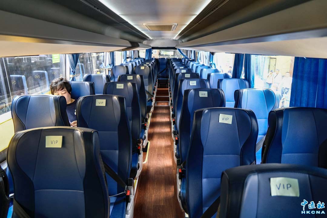 6月24日,“安凱A9”電動旅遊巴士啟航典禮在香港舉行。“安凱A9”是首部香港─深圳跨境行走的純電動旅遊巴士,它有430公里的續航能力、25%的爬坡度,以及全面提升的電池、電機、電控,為跨境旅客提供安全、舒適而環保的接送服務。(香港中通社記者 許其皓攝)
