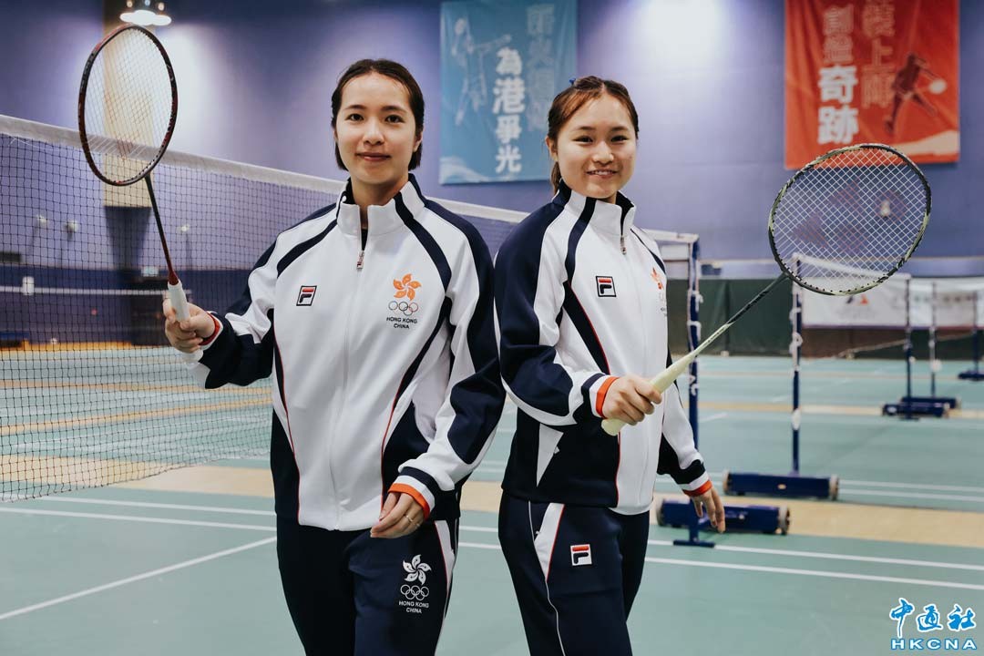 巴黎奧運在即,港隊在羽毛球項目取得4張入場券。6月26日,香港體育學院與中國香港羽毛球總會舉辦記者會,取得奧運資格的運動員分享備戰情況及期望。圖為女雙代表楊雅婷和楊霈霖出席記者會。(香港中通社記者 謝光磊 攝)