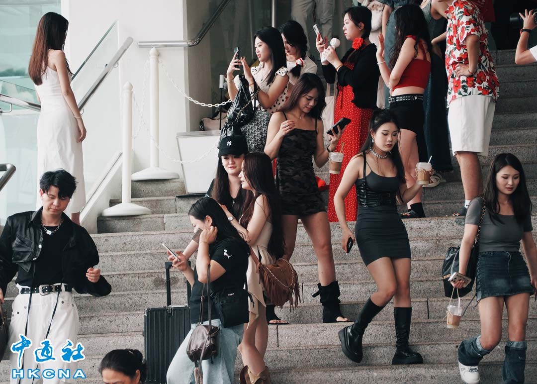 7月1日香港特區成立27周年,民政事務總署聯同社會各界會在十八區舉辦各式各樣的精彩活動,與眾同樂、共慶回歸。6月29日,香港一連3天的連假開啟,尖沙咀文化中心和海濱一帶商圈人山人海,市民和遊客絡繹不絕,不少內地旅遊團在瀏覽維港風光,網紅打卡點更是排隊拍照。(香港中通社記者 洪少葵攝)